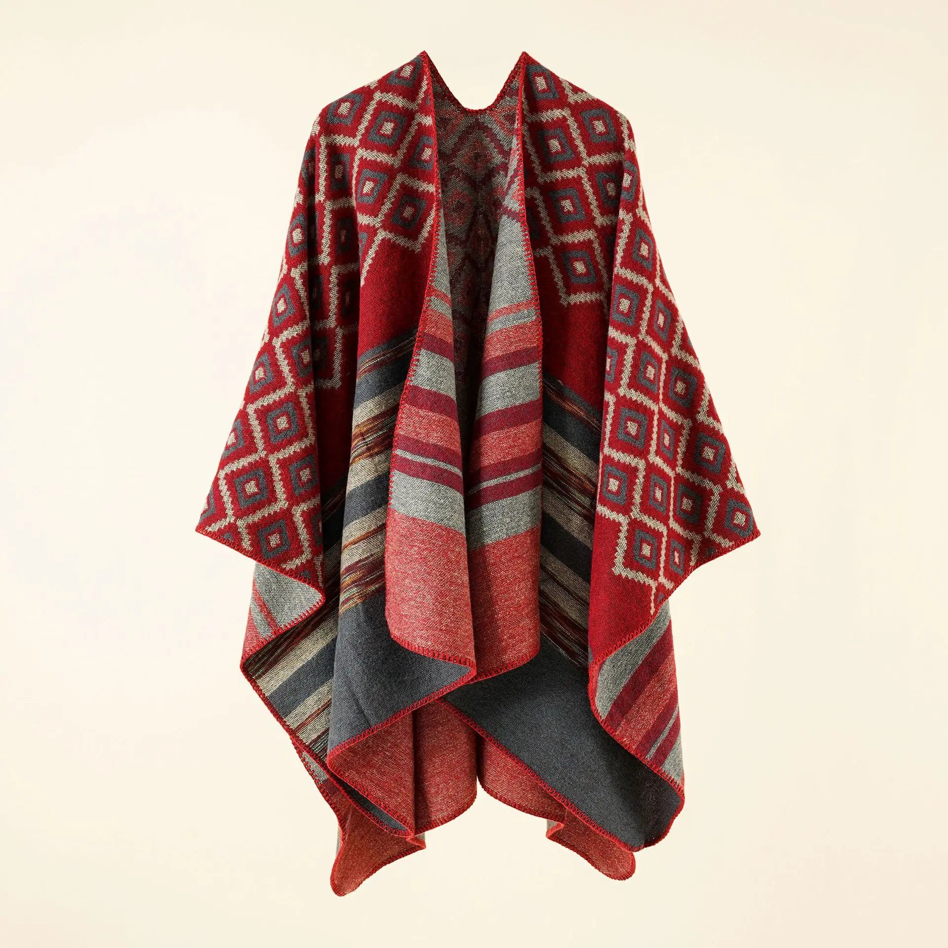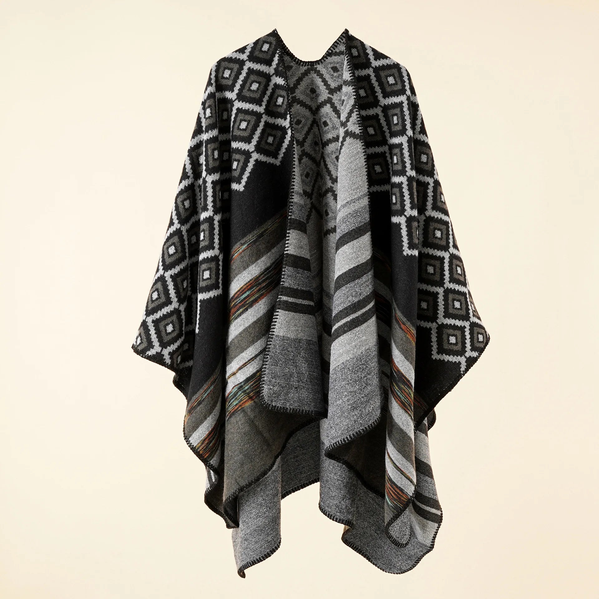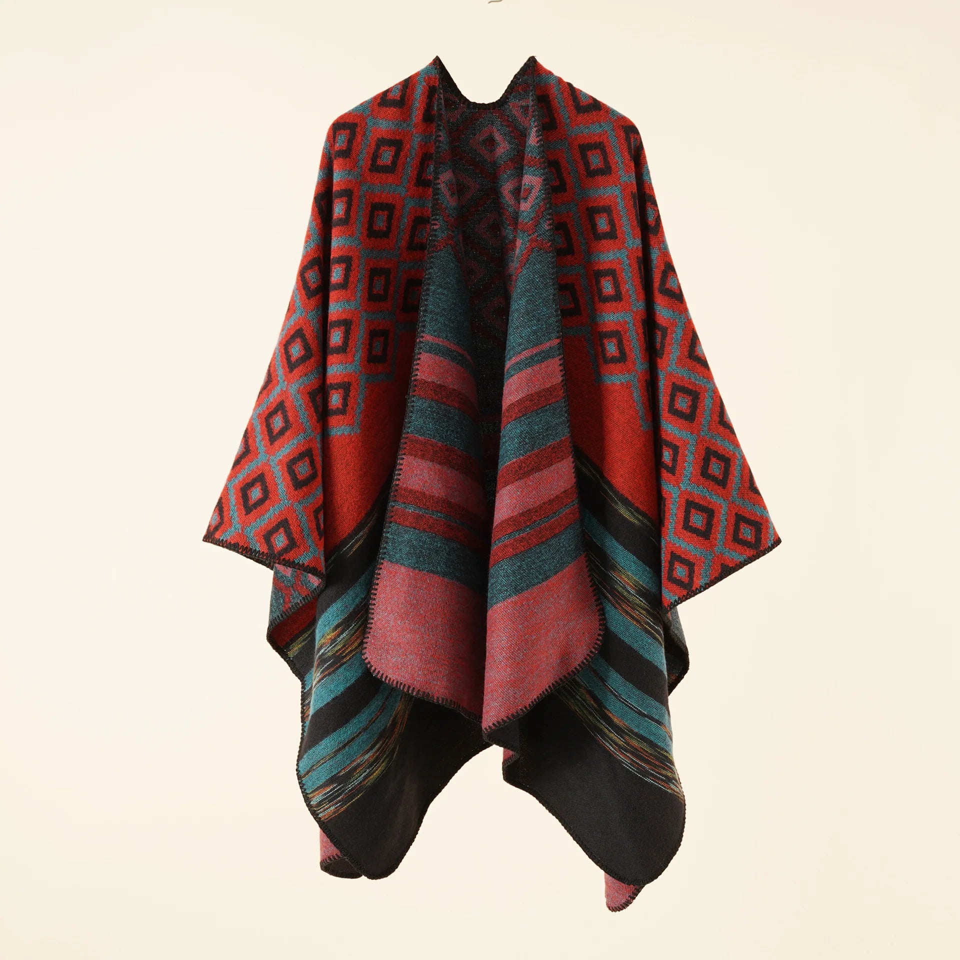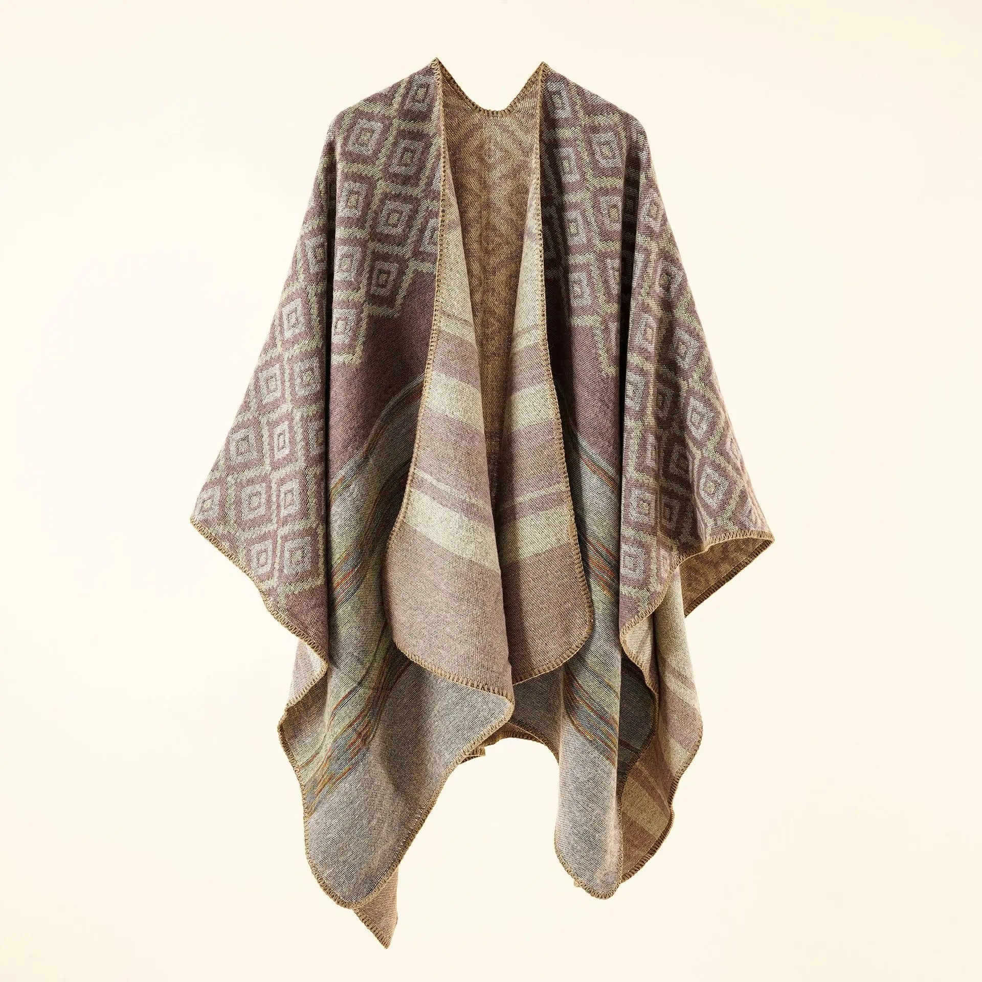 Autumn Winter New Geometric Stripe Pattern Imitation Cashmere Poncho