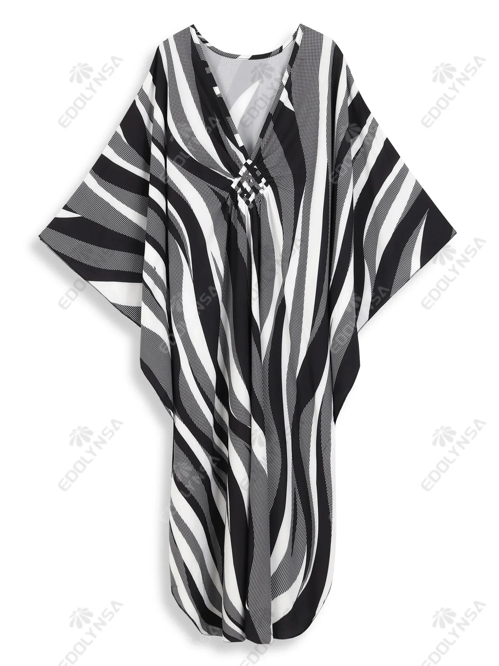 Introducing our Summer Causal Striped Print Kaftan - the perfect addition to your wardrobe this season! With its lightweight fabric and stylish striped print, this kaftan offers both comfort and fashion. Perfect for a day at the beach or a summer soirée, this kaftan is sure to make a statement. Don't miss out on this must-have piece!