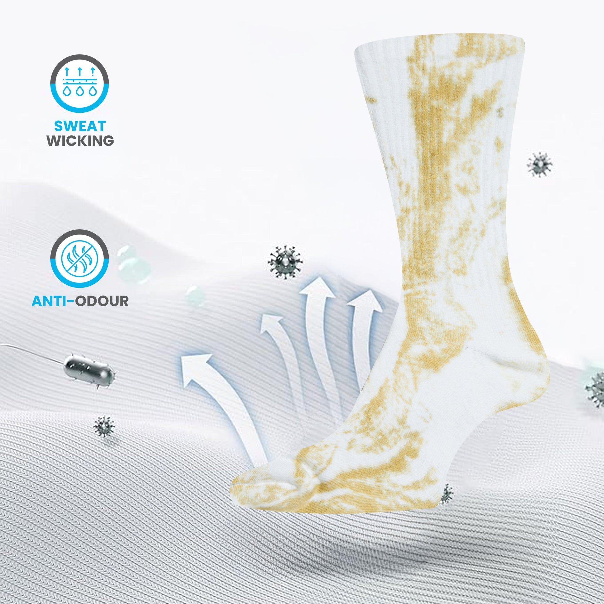 Description: Elevate your sock game with five unique tie-dye patterns, each designed to add a pop of colour to your look. With designs that effortlessly transition from the gym to a casual day out, these socks are sure to make a statement.