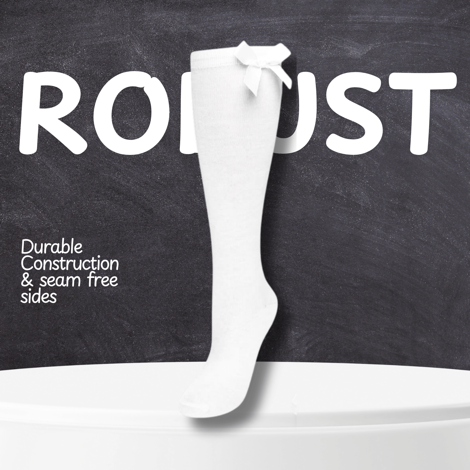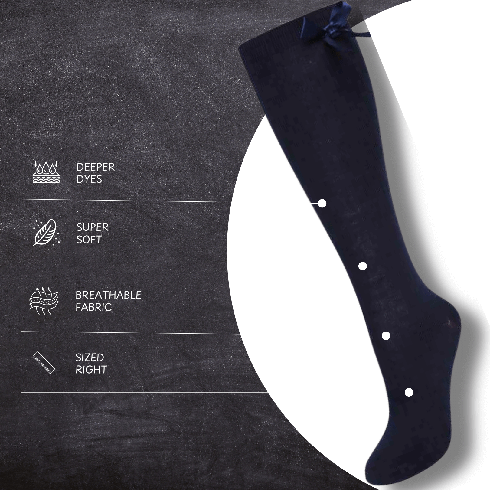6 Pairs Girls Knee High Socks With Ribbon Bows Back To School Cotton Rich Long Socks Stylish Comfortable Durable For Uniforms Everyday Wear Ages 2-16 Years by Sock Stack