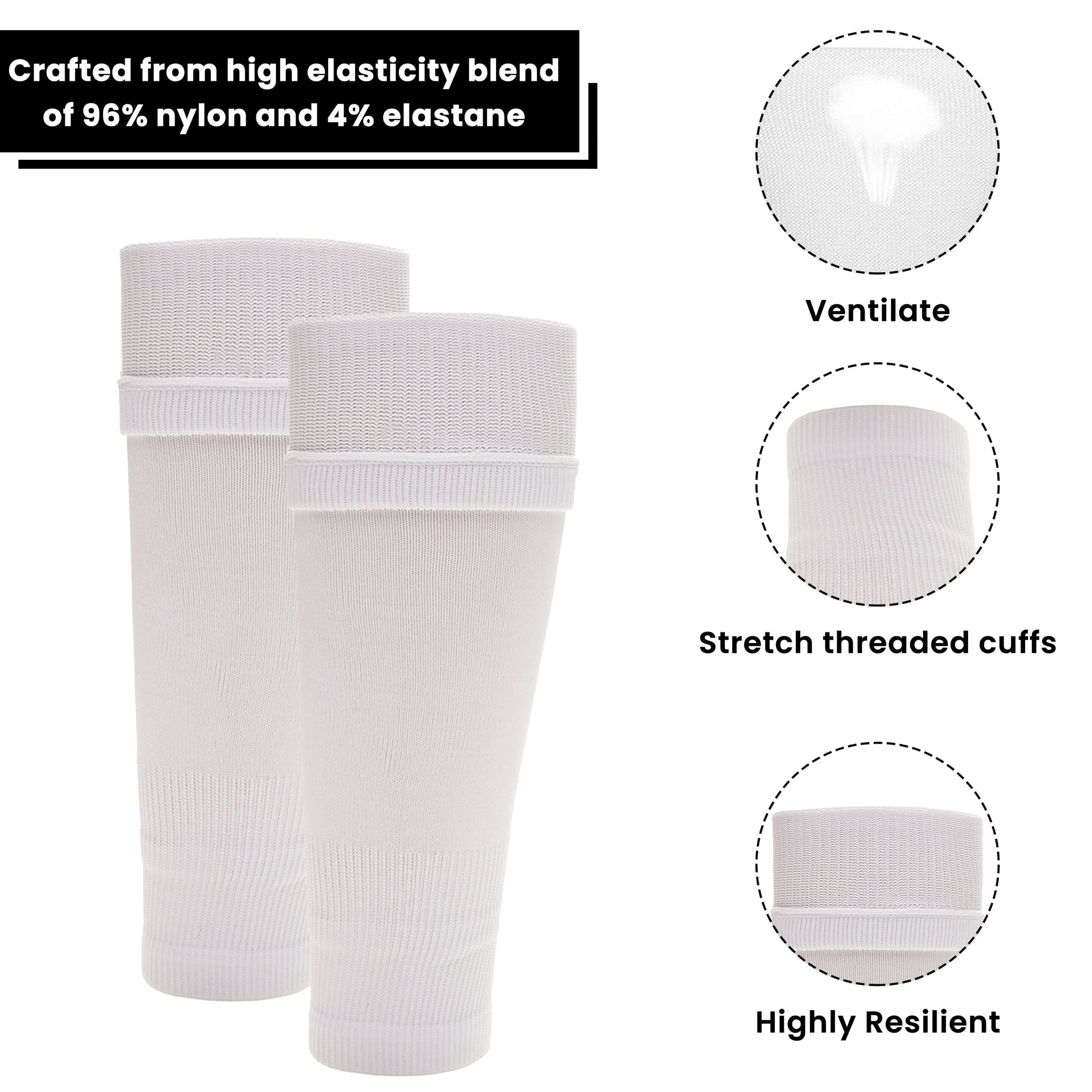 Adults White Football Leg Sleeve Socks Compression Support Fits Over Shin Pads Breathable & Secure for Training Running by Sock Stack