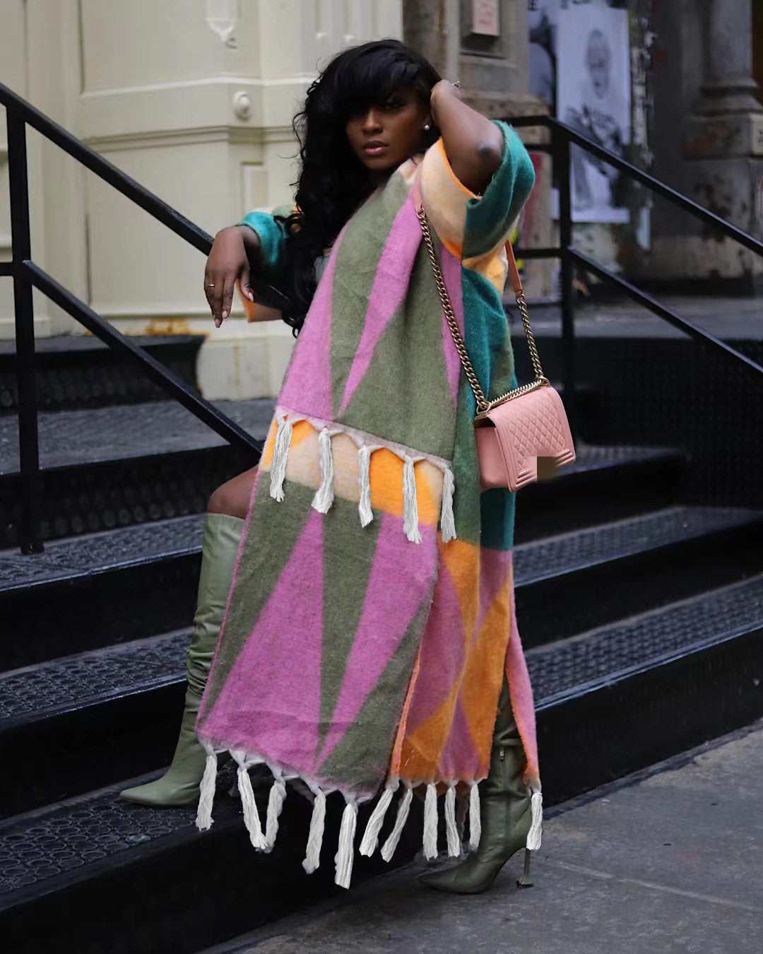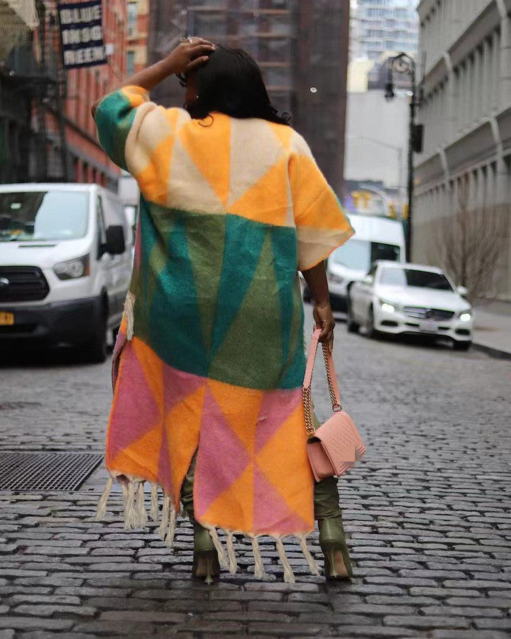 Indulge in pure elegance with our Amazing geometric tassle duster jacket! Featuring a stunning geometric design and playful tassel details, this jacket will elevate any outfit and turn heads wherever you go. Stay stylish and chic all year round with this must-have piece!