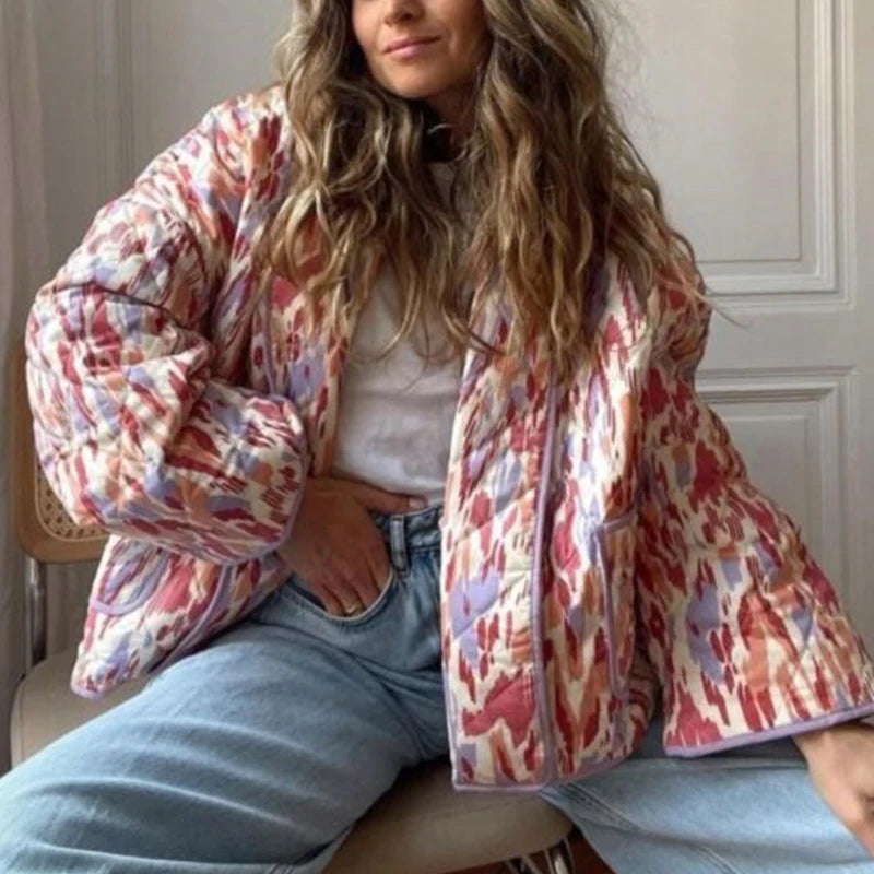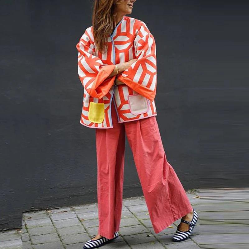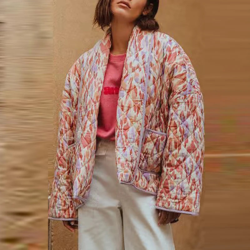 Autumn Winer Women Coat Geometric Print Casual Jacket