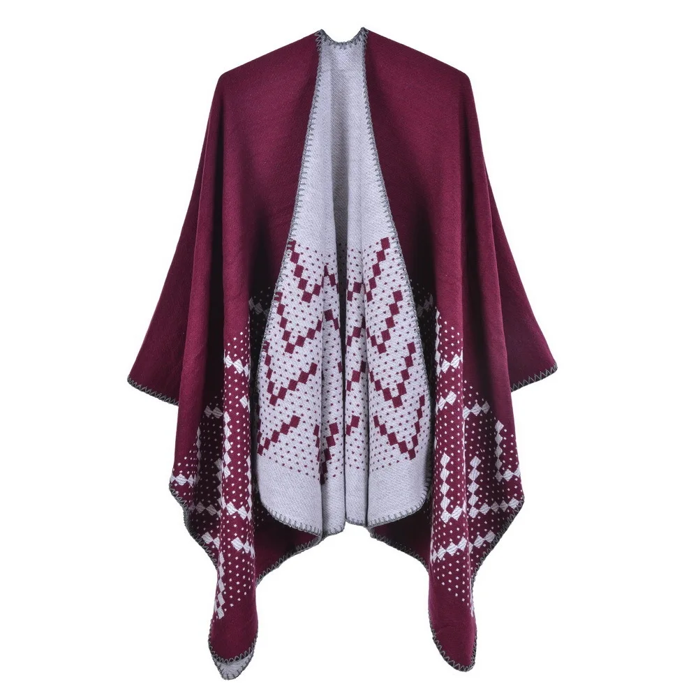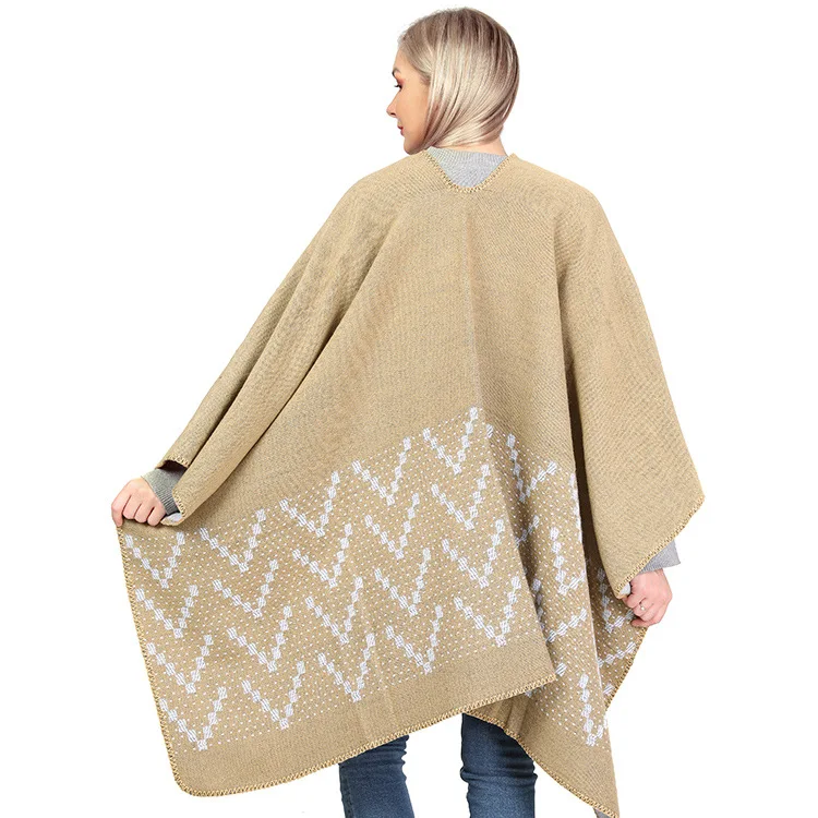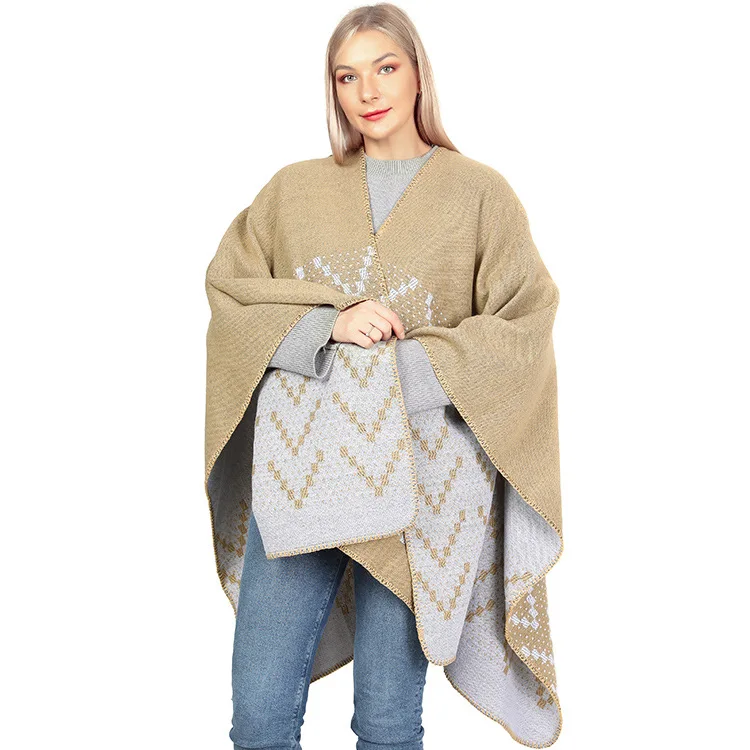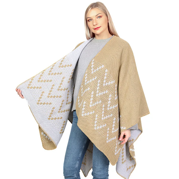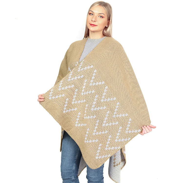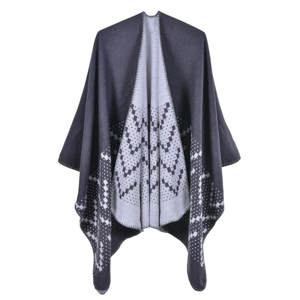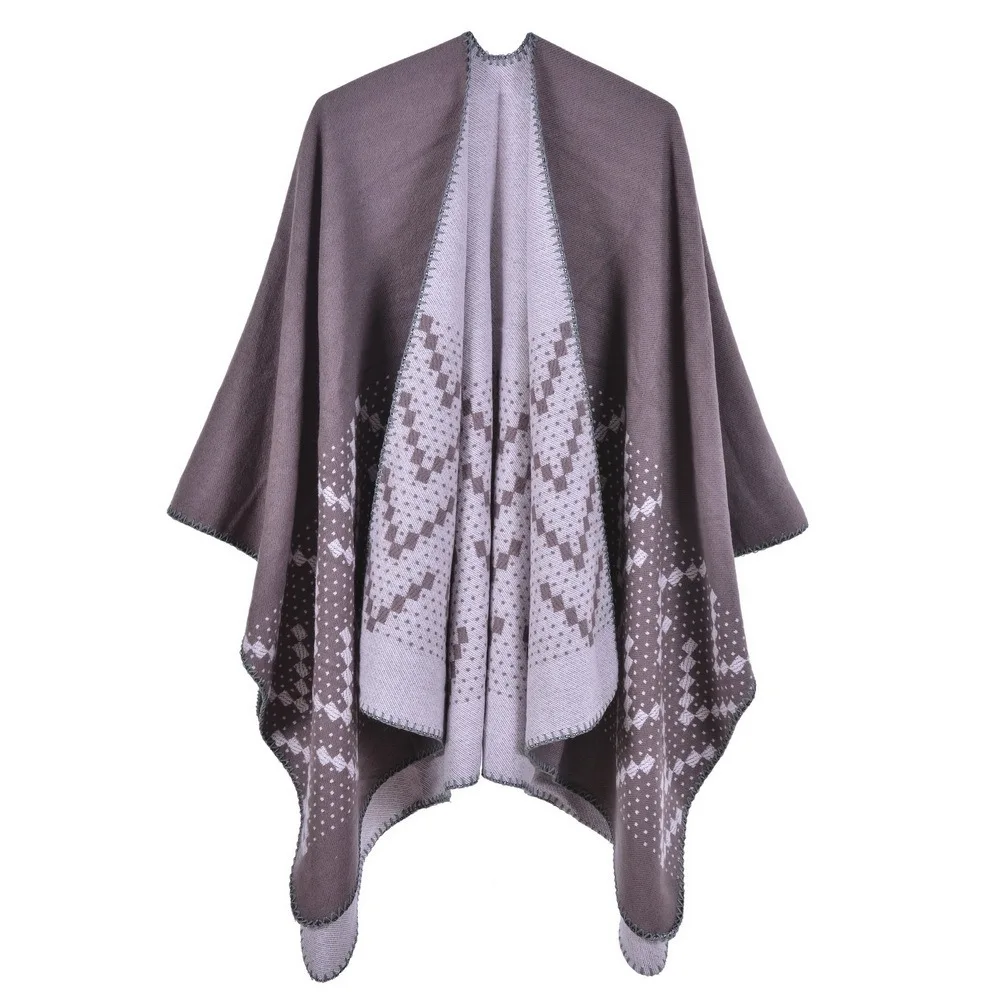 Autumn Winter Geometric Pattern Knitted Shawl Women's cloak Warm Scarf Fashion Street Poncho Lady Capes Gray Cloaks