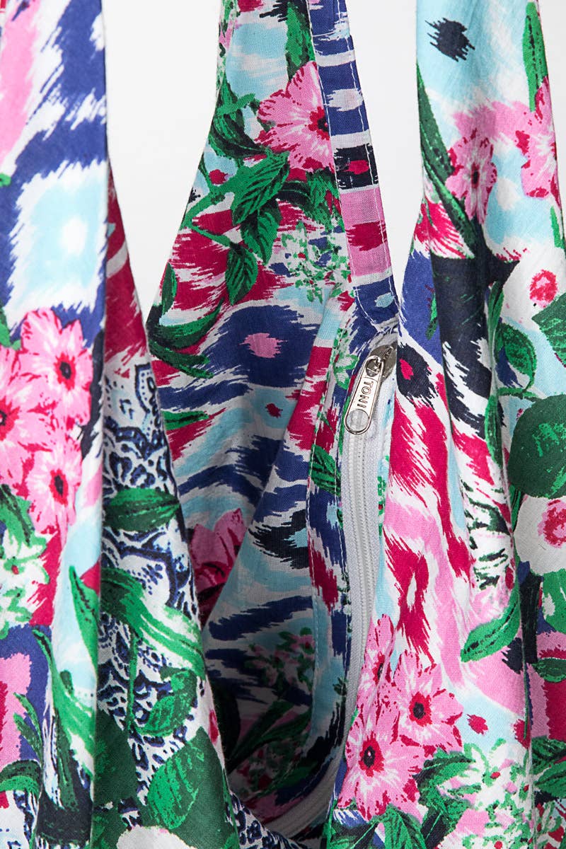 Ethnic with floral print fine cotton zipper closure with shoulder straps bag