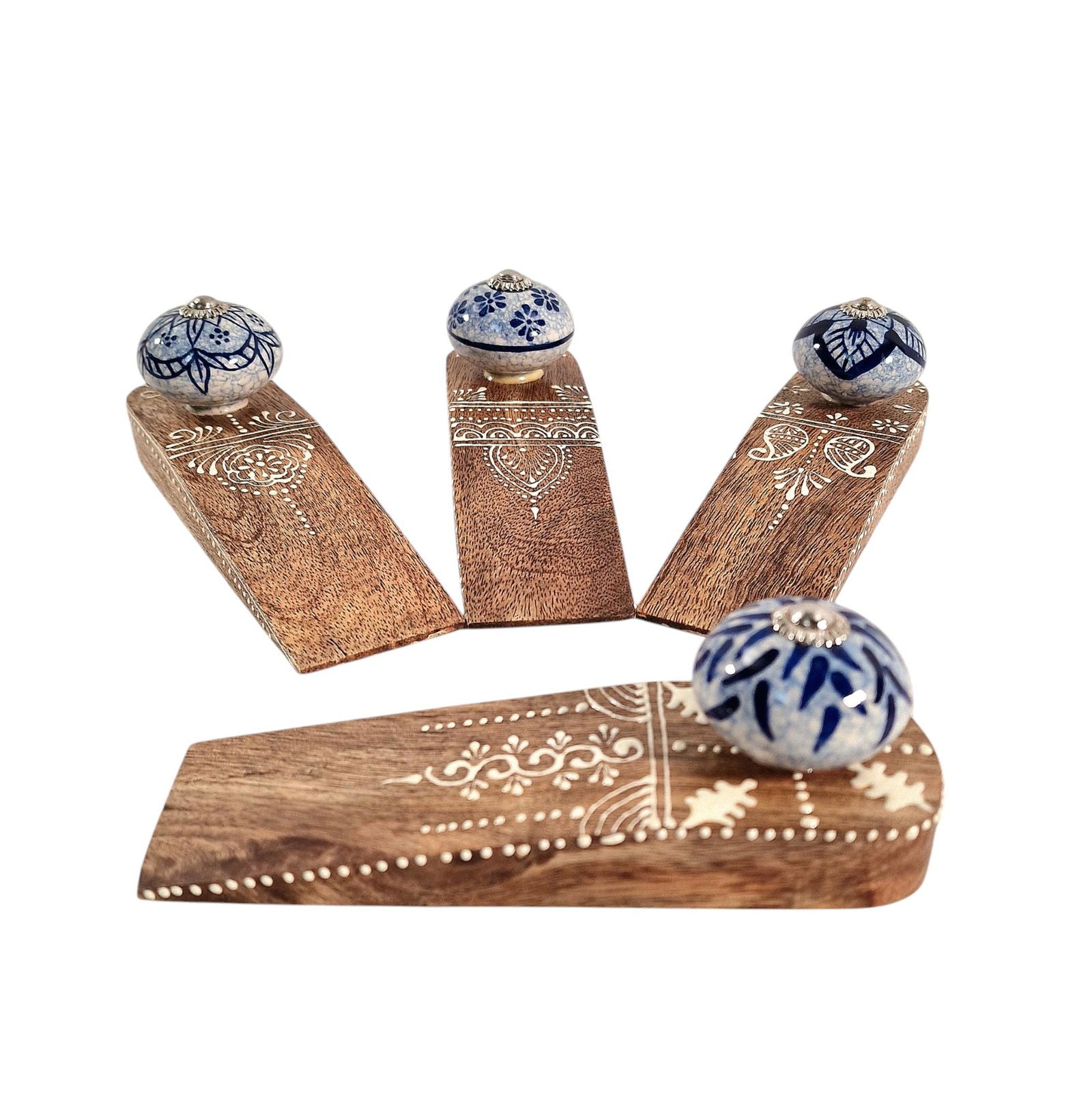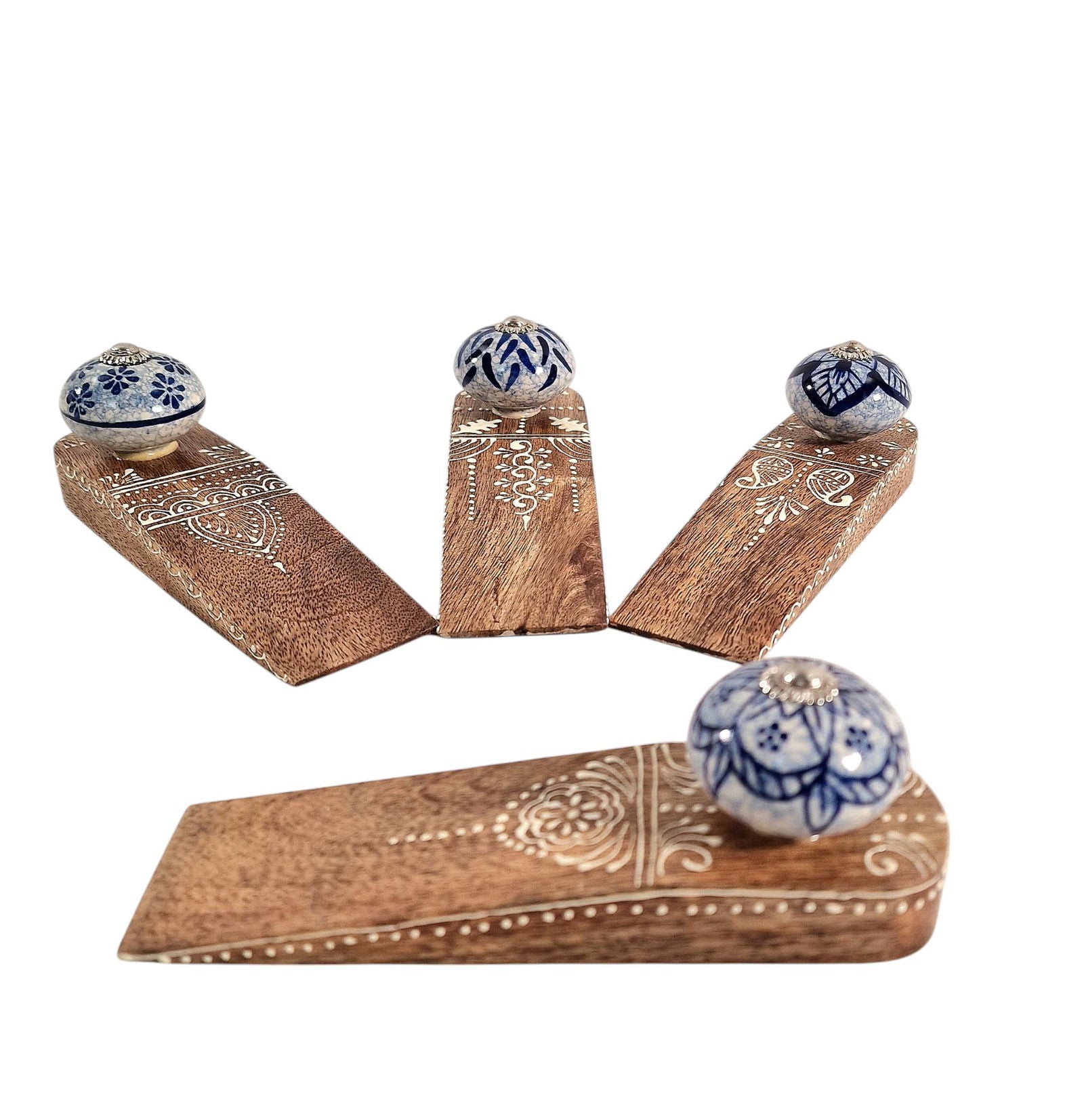 Ceramic Knob Topped Wooden Doorstop Set of 4