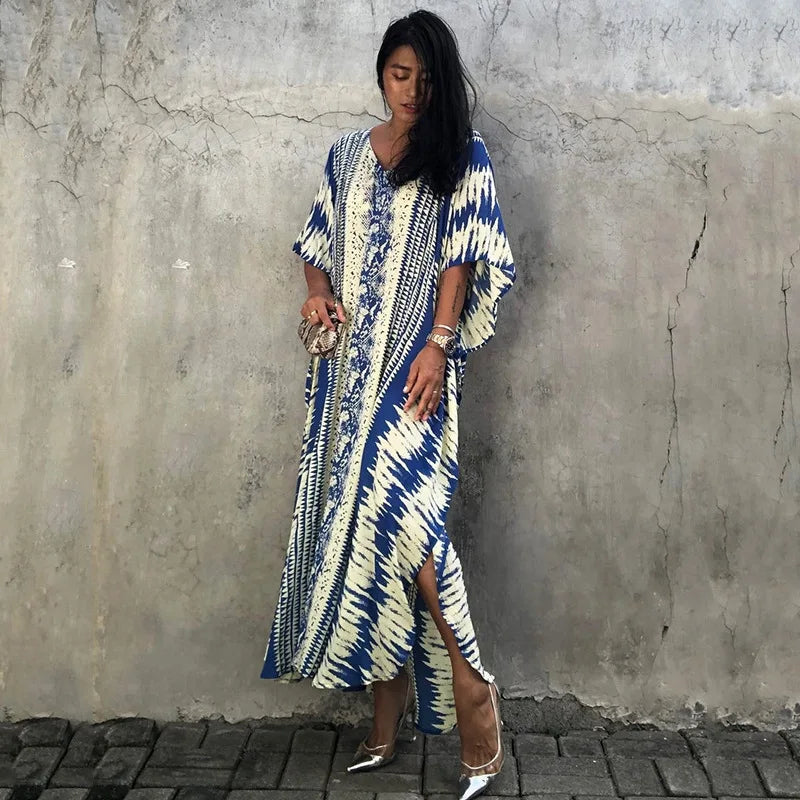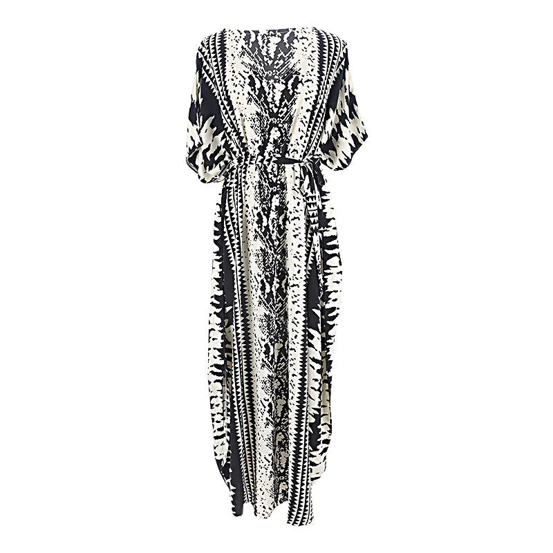 Slither into style with our Cotton Snake Patterned Kaftan. This breathable cotton design combines exotic snake patterns with the relaxed comfort you crave. Perfect for beach days or casual outings, it
