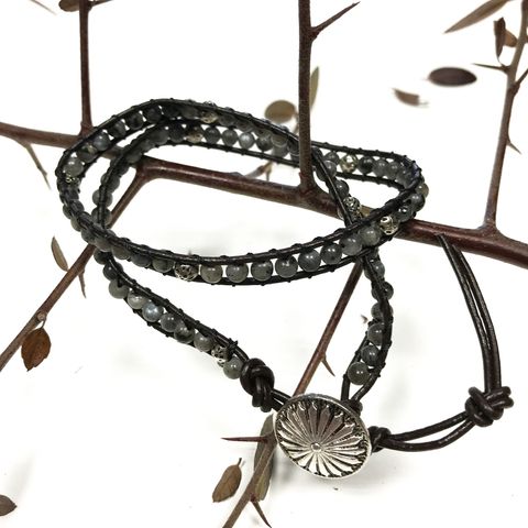 Double Wrap Bracelet - Grey Stone & Mini Globes