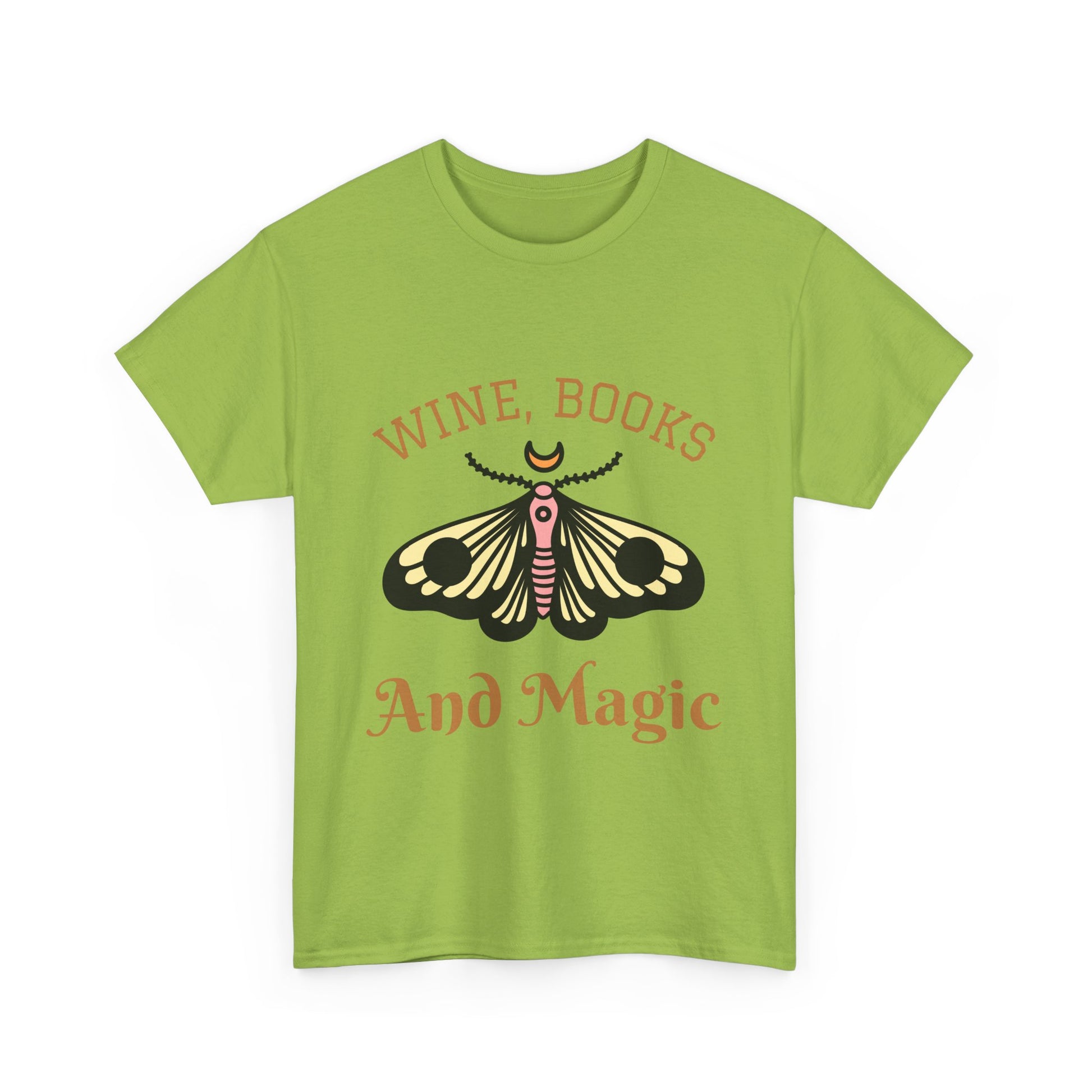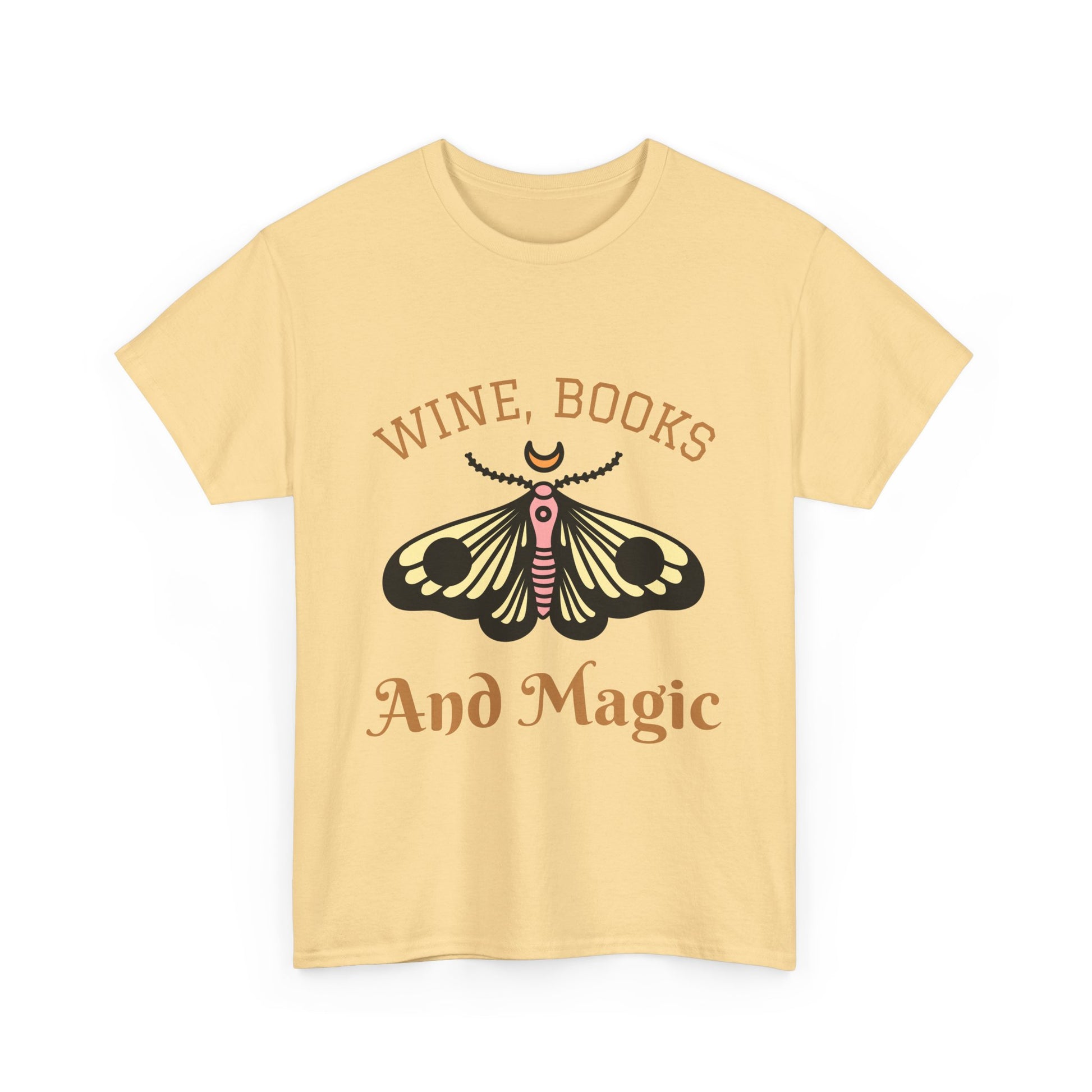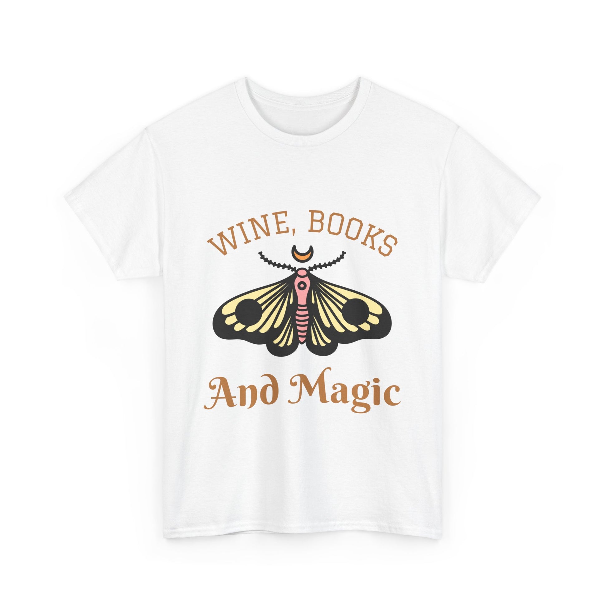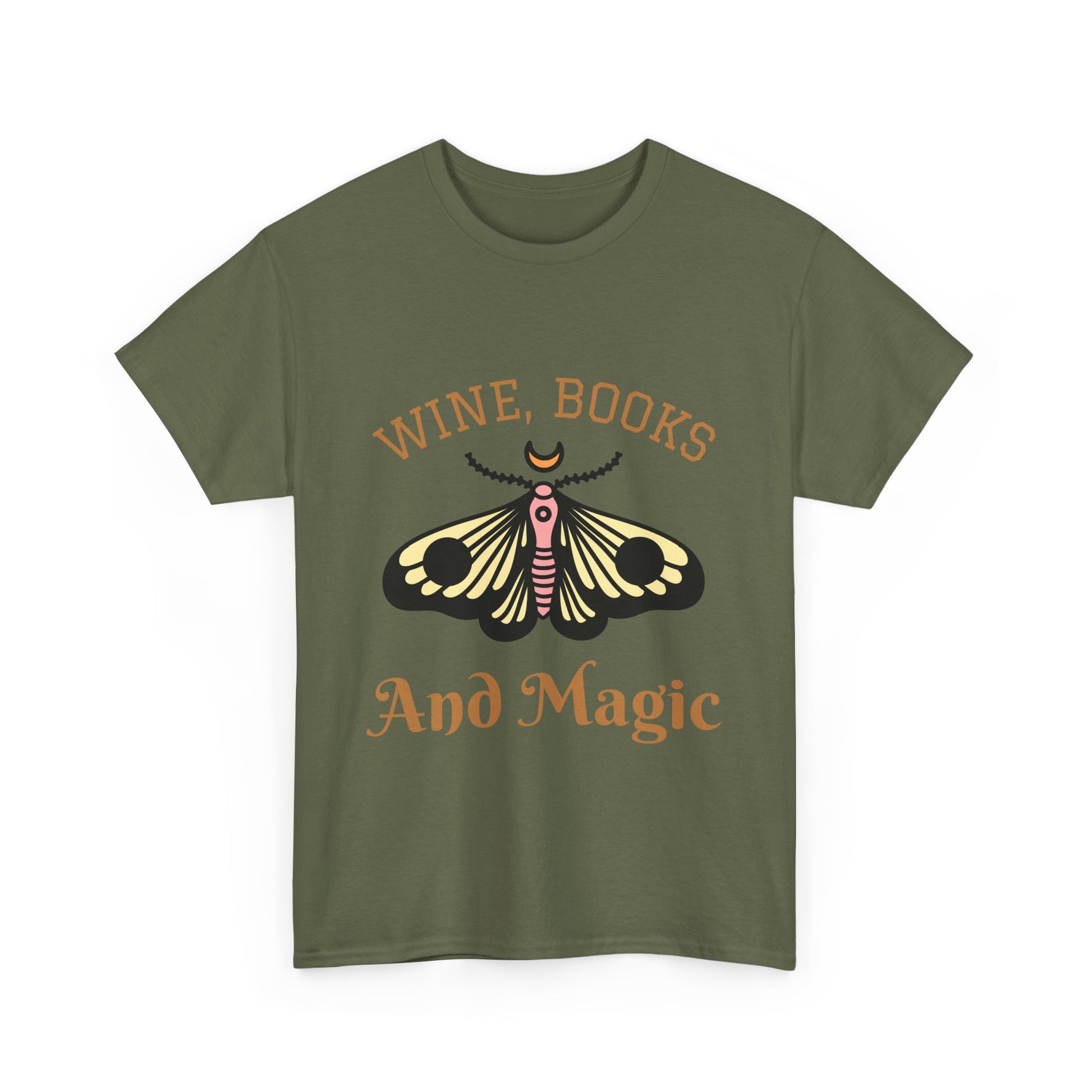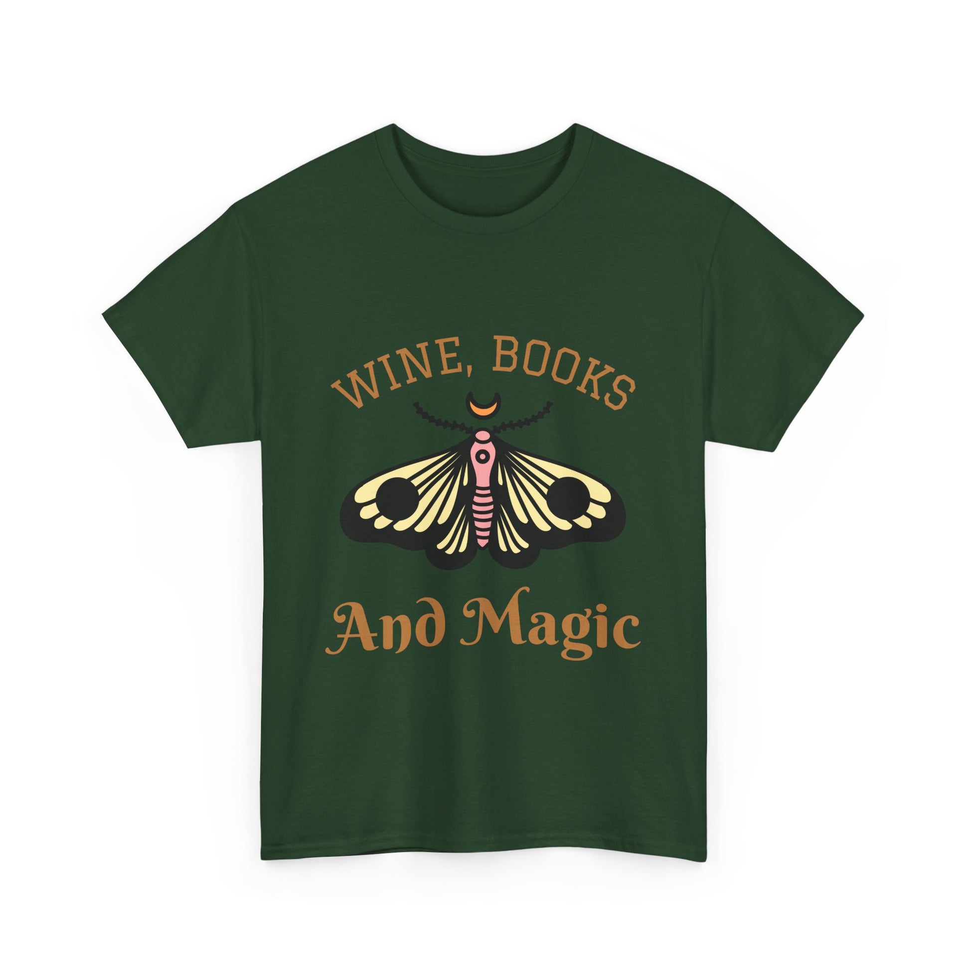 Enchanting Bookworm Tee - "Wine, Books, and Magic" - Perfect for Readers, Gifts for Book Lovers, Cozy Nights, and Book Clubs