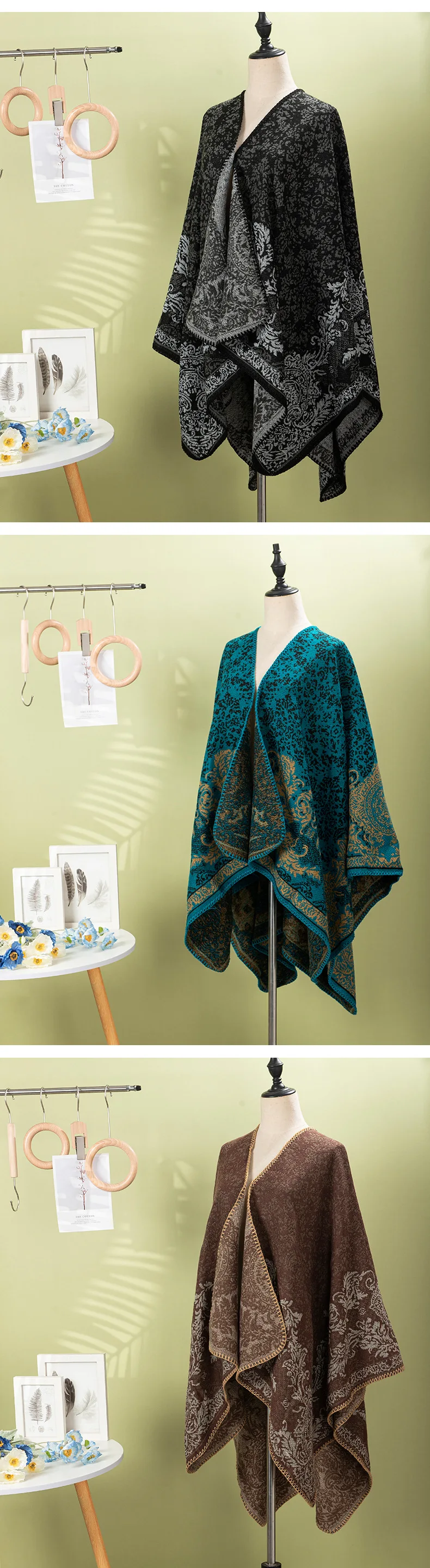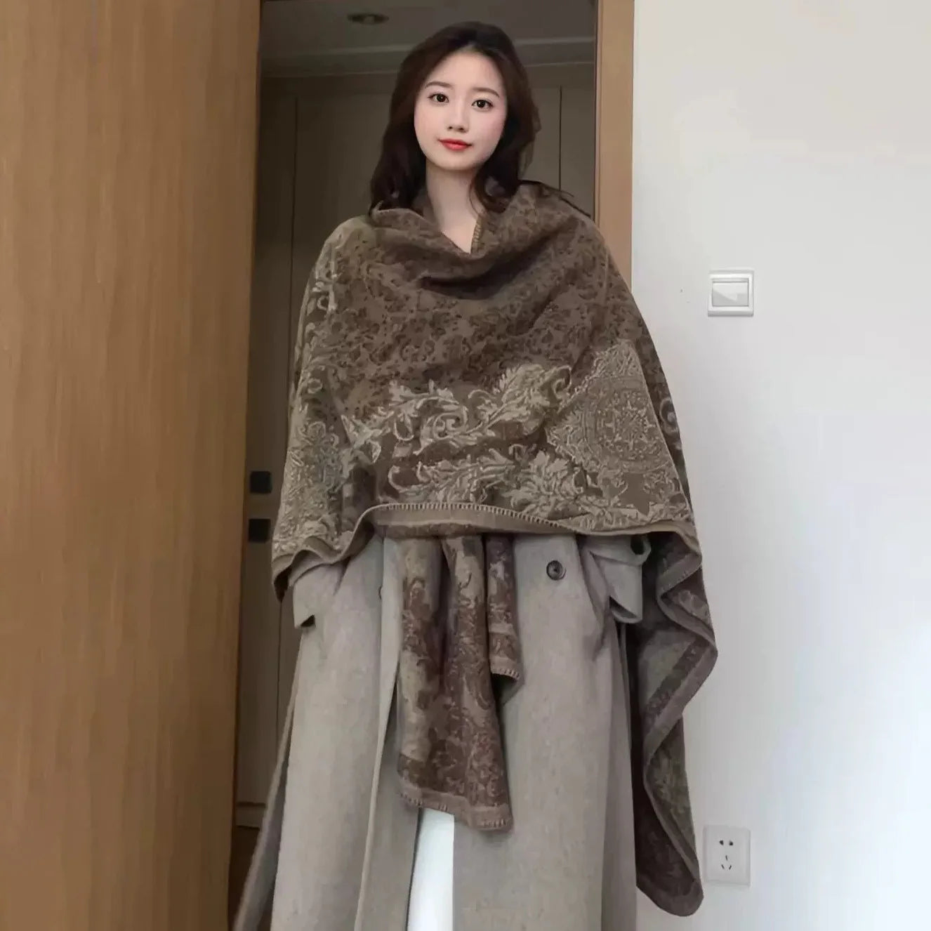 Ethnic Pattern Shawl Cape, Vintage Style Windproof Scarf for Women, Outdoor Travel Poncho & Cardigan