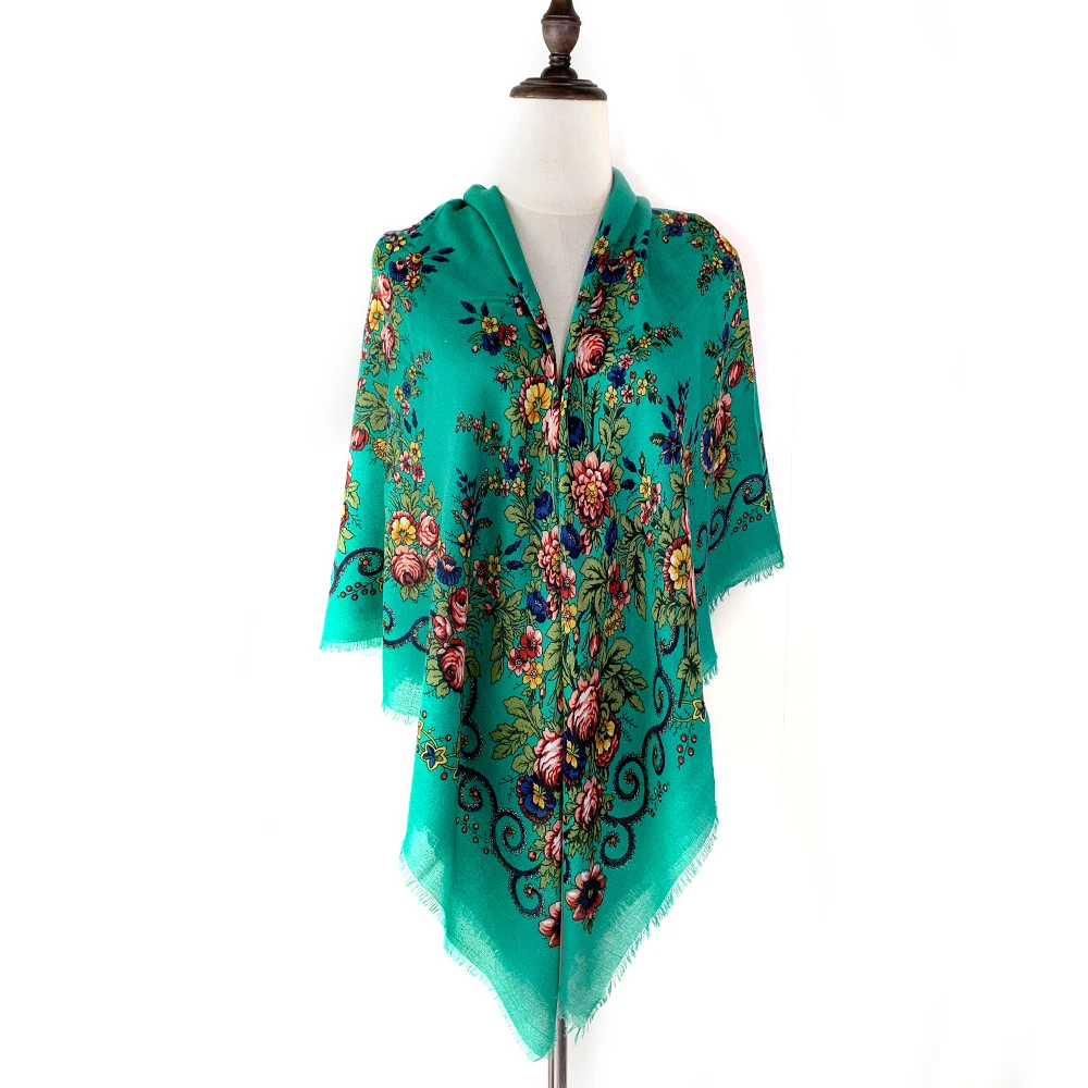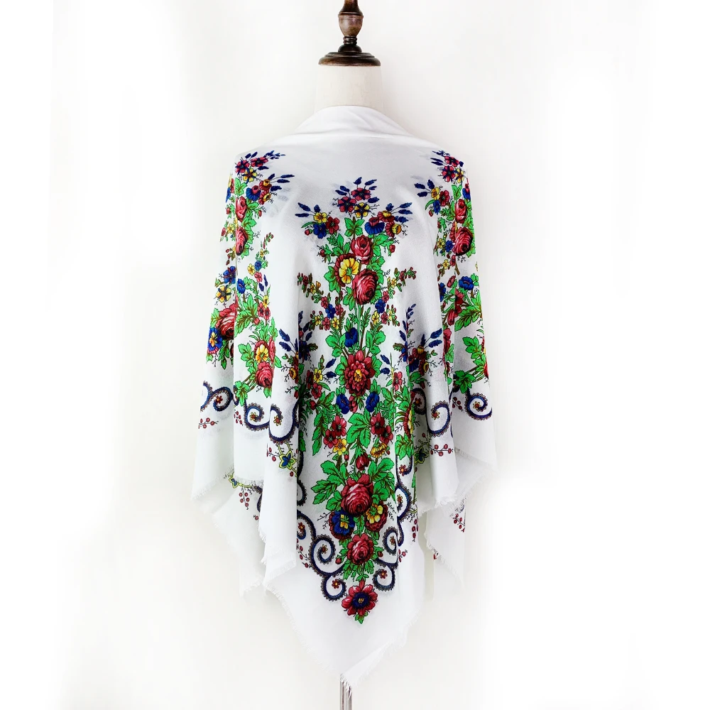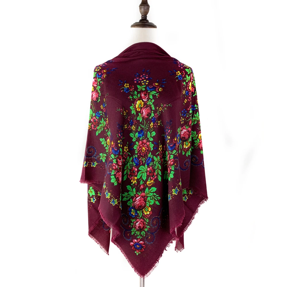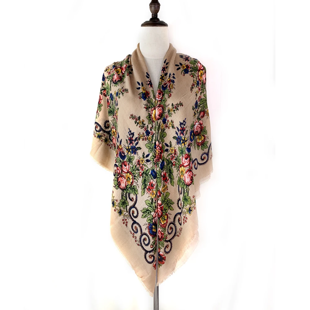 130*130cm Breathable Thin Russian Style Floral Print Square Scarf for Women Luxury Shawl Bandana Foulard Femme Beach Stole
