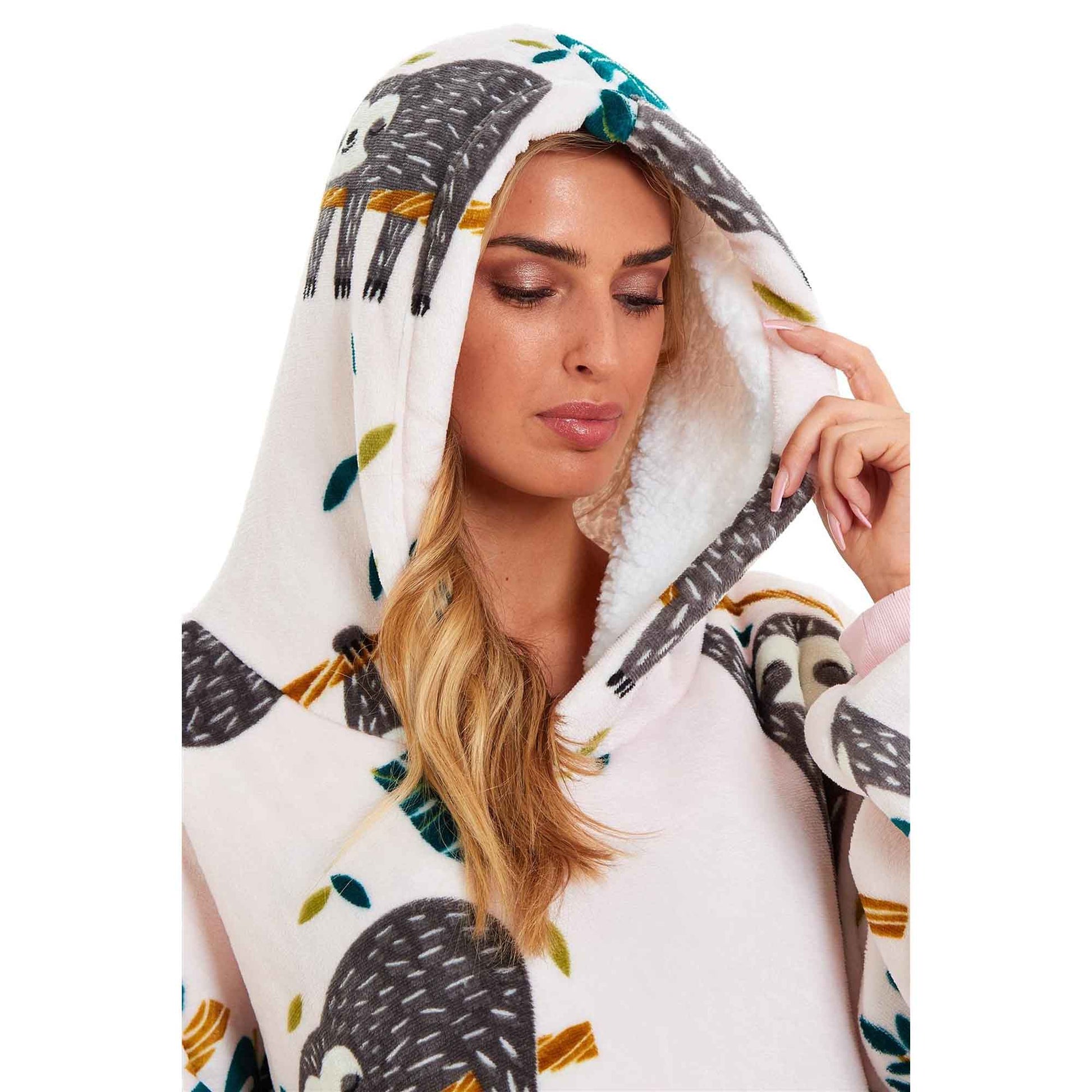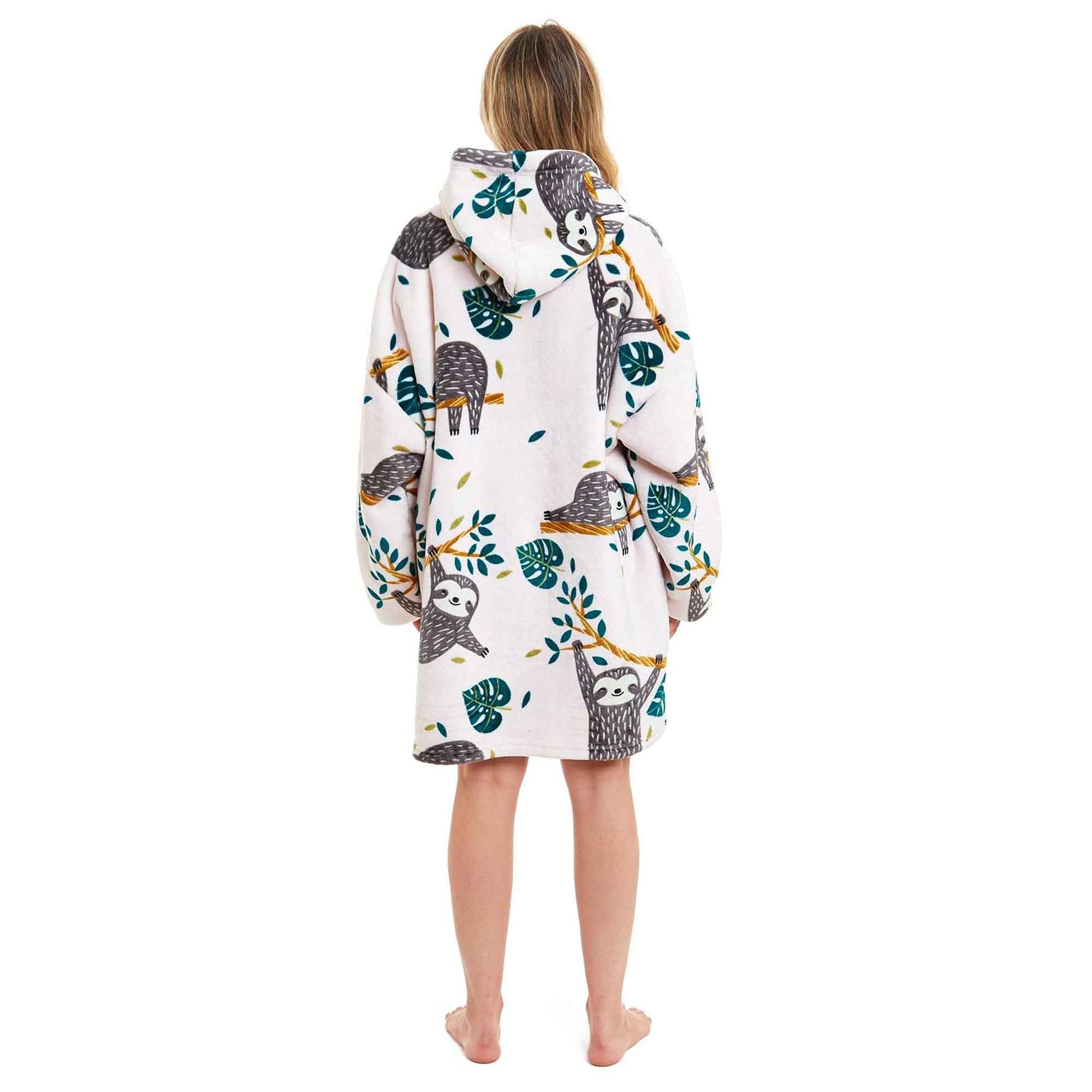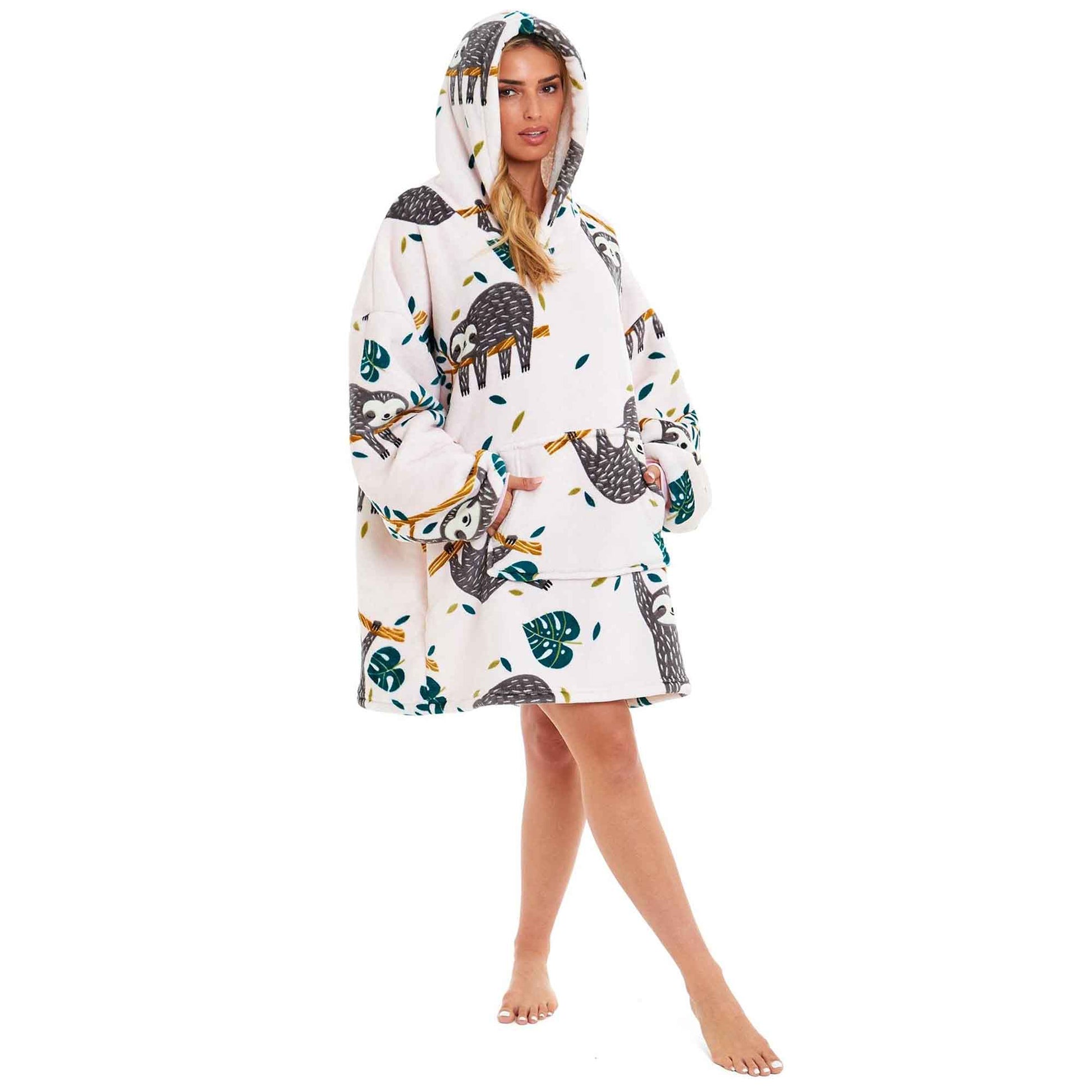 Oversized Lazy Sloth Hooded Blanket, Reverse Ultra Soft Sherpa Fur, Giant Big Hoodie Sweatshirt, Plush Flannel Loungewear Nightwear