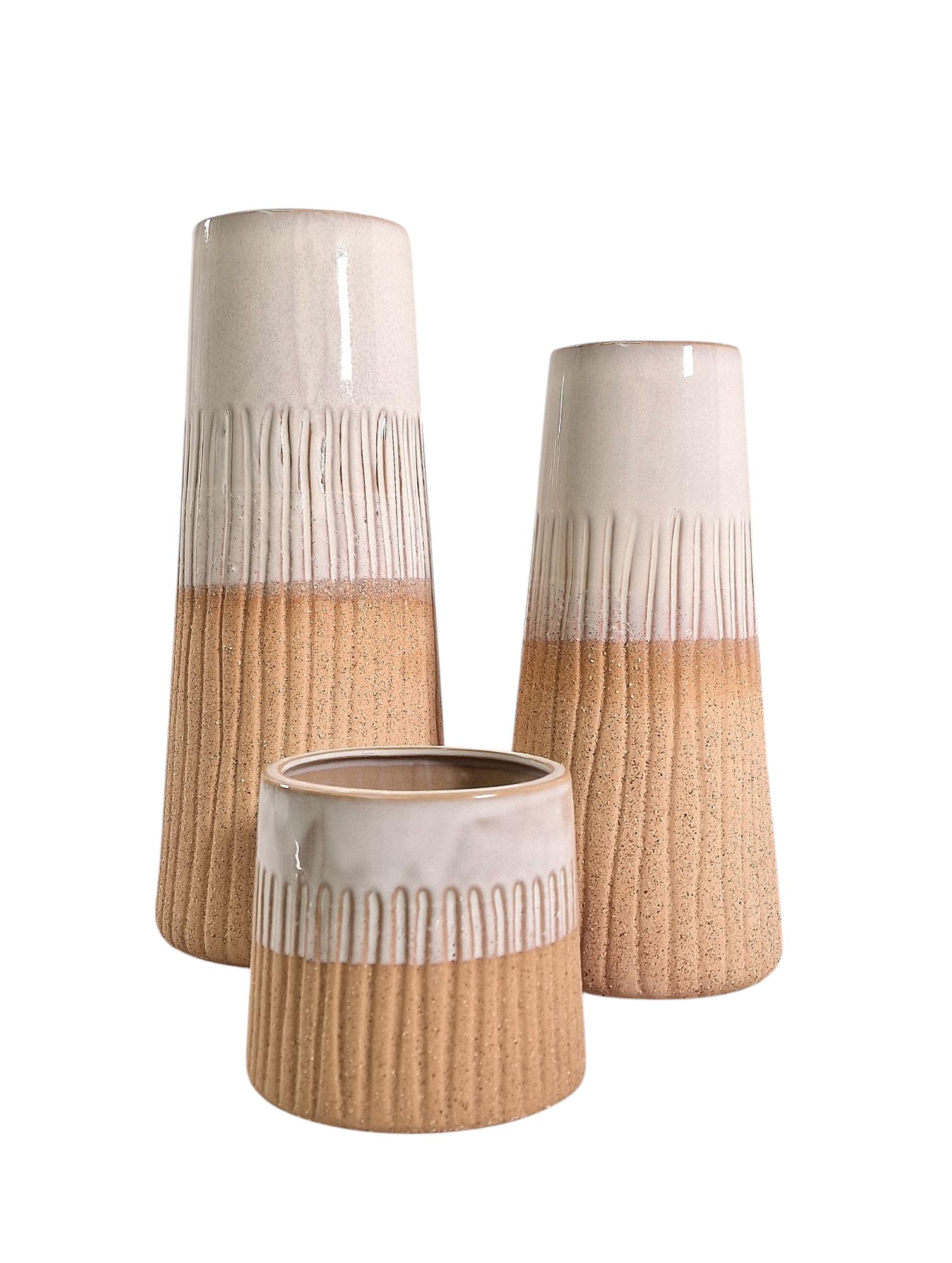 Simply stunning and available as a set with 3 size options. The 2 tone glaze adds class to any room. Measurements: D14 x H33 x W14cm
