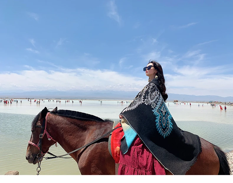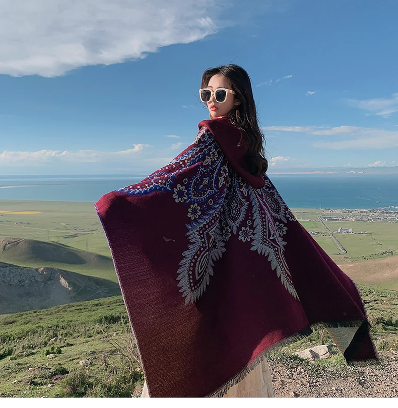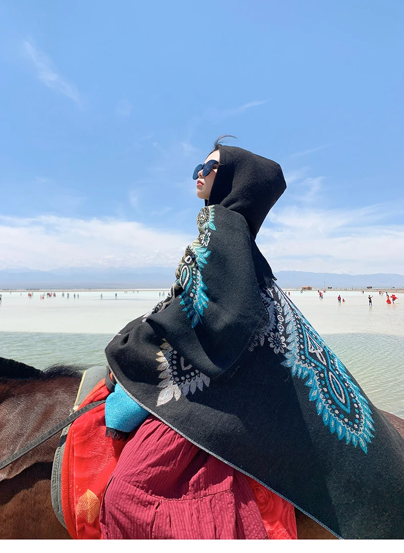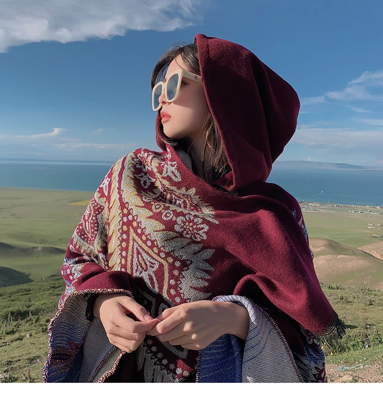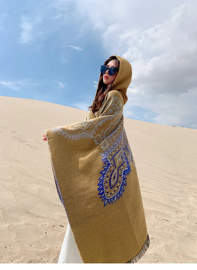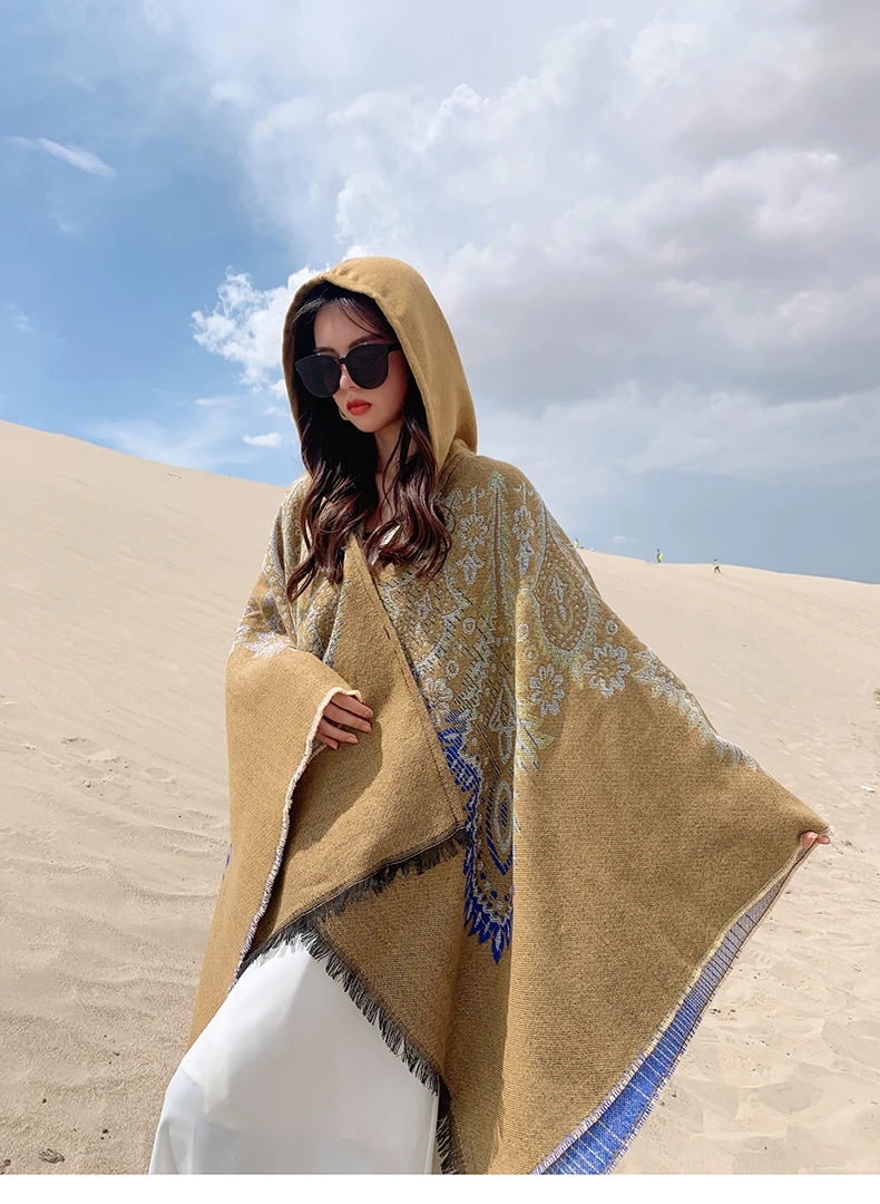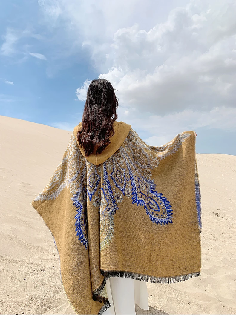 GypsyLady Vintage Bohemian Chic Cloaks Capes Hooded Thick Warm Women Autumn Knitted Hippie Ethnic Capes Cloak Poncho Outwear New