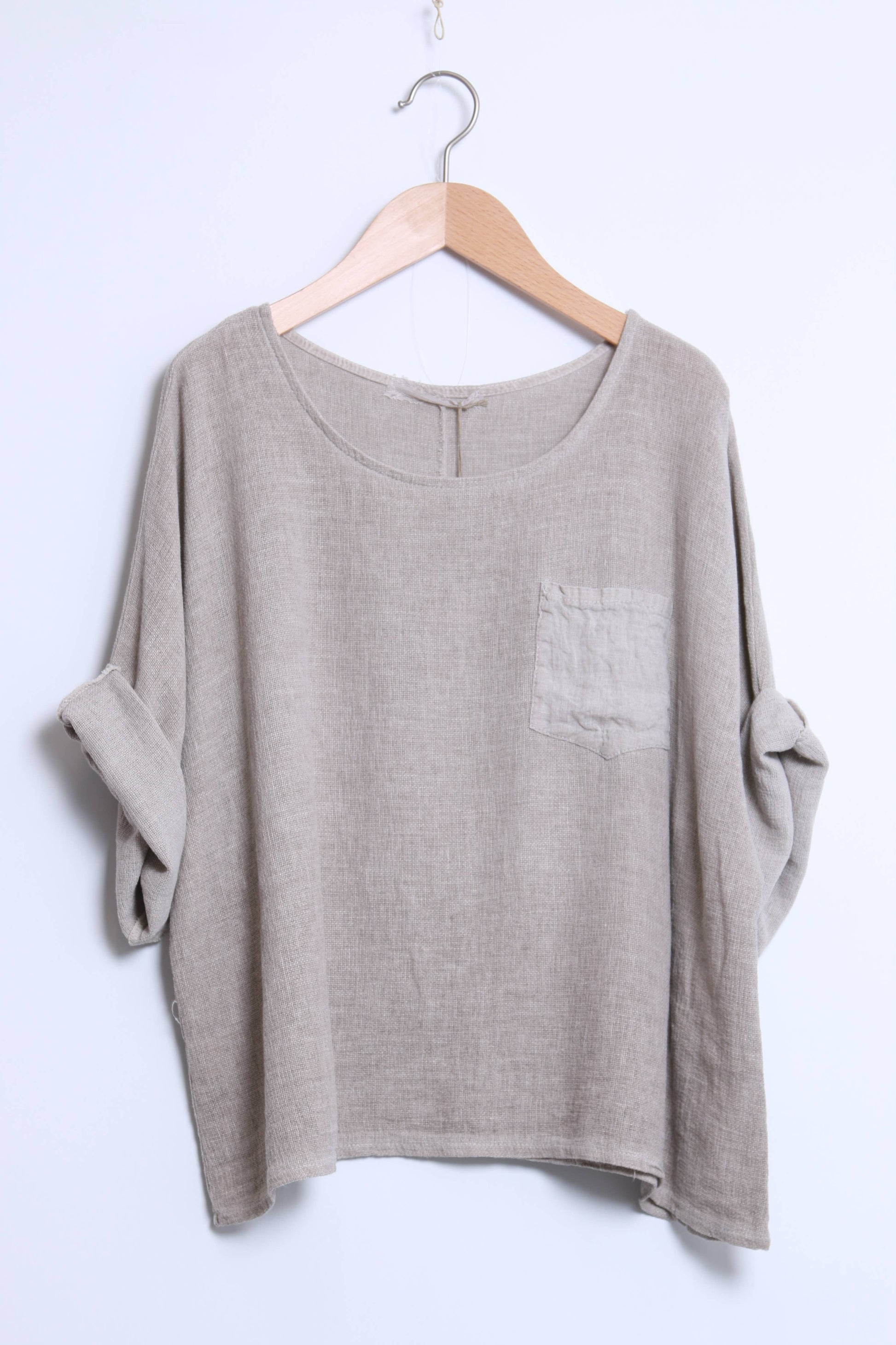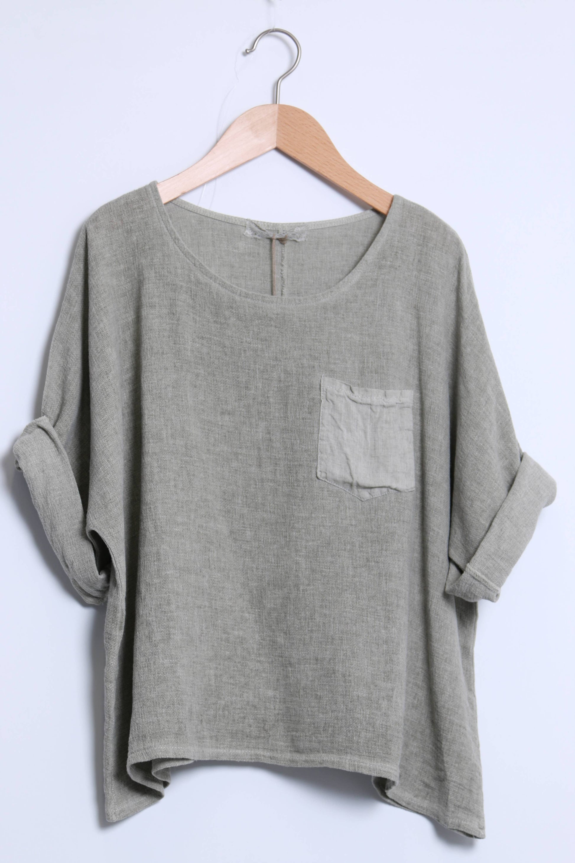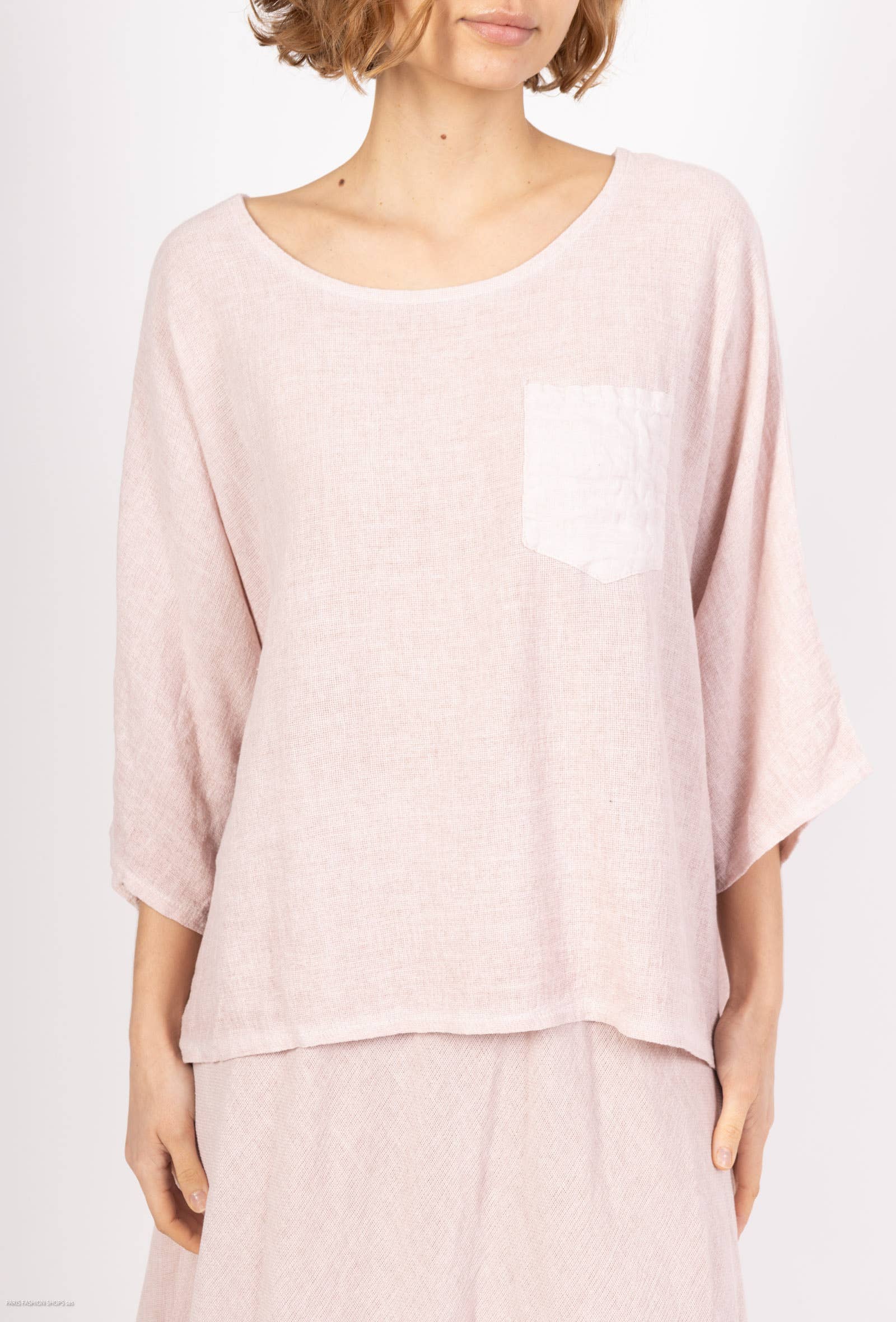 Linen cotton top with a side pocket and mid-length sleeves