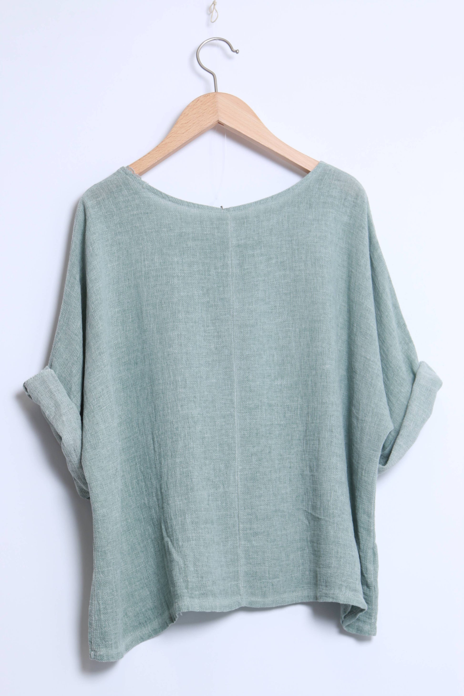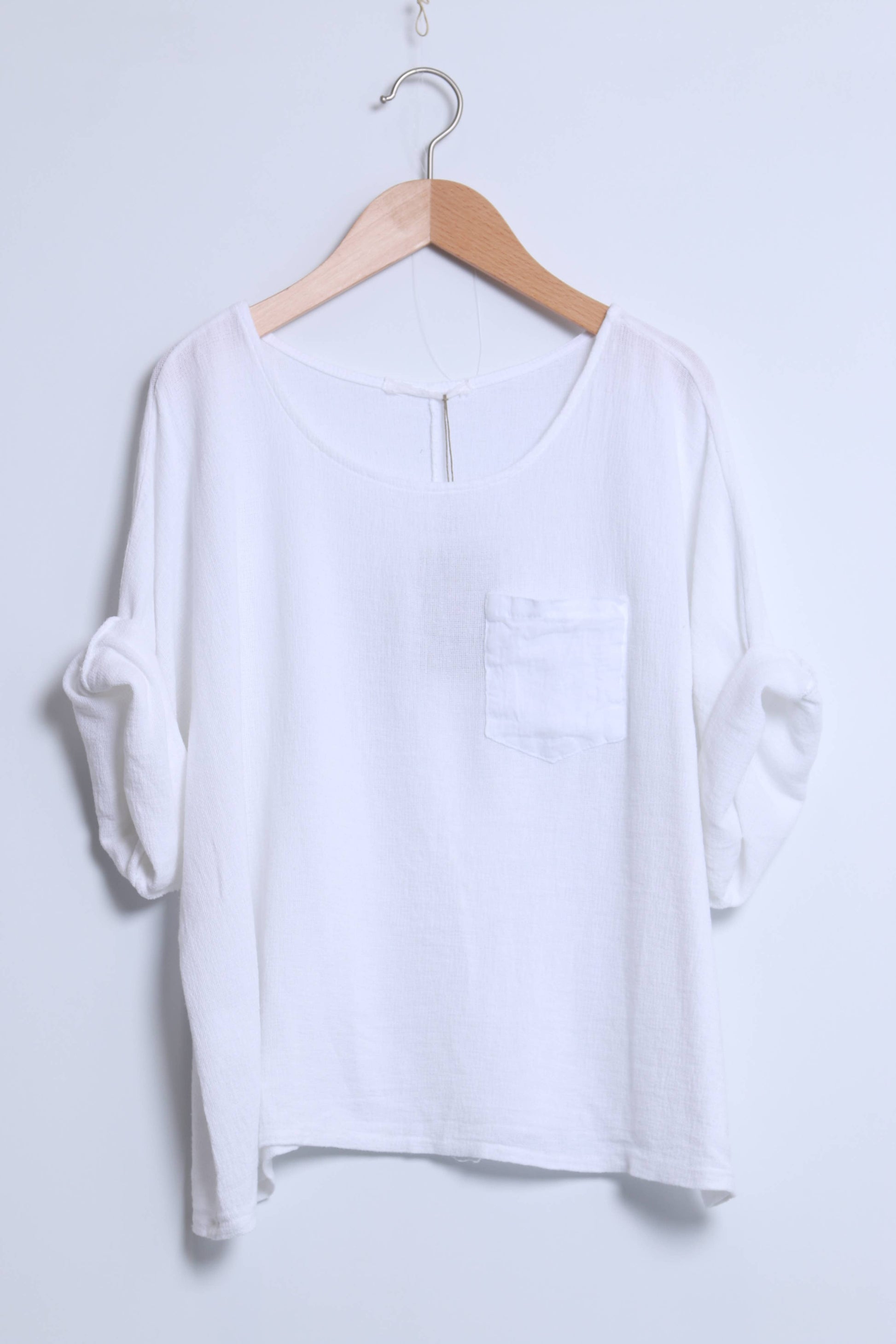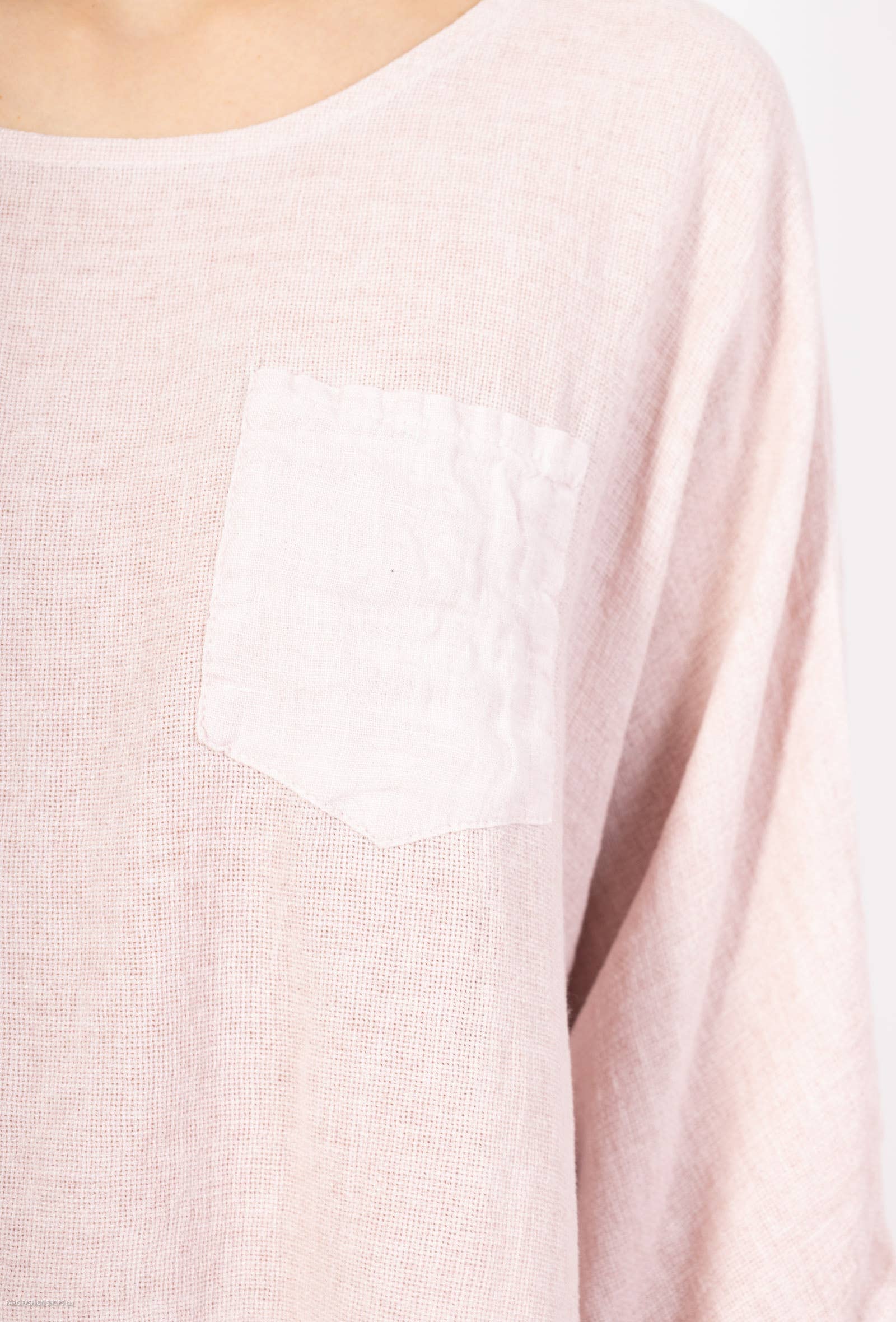Linen cotton top with a side pocket and mid-length sleeves