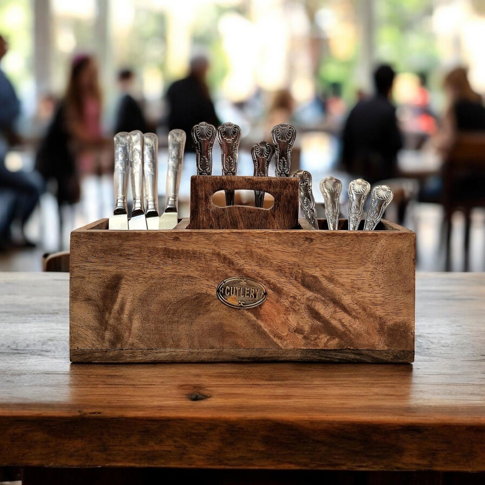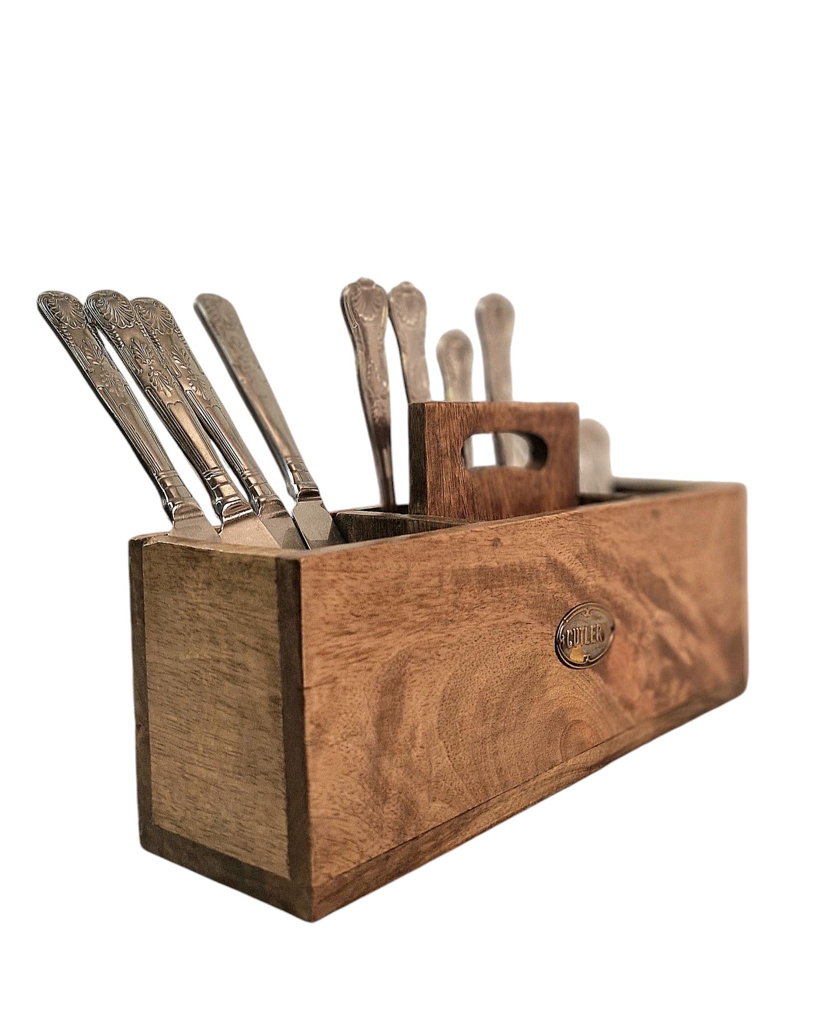 Mango Wood Cutlery Stand with Handle