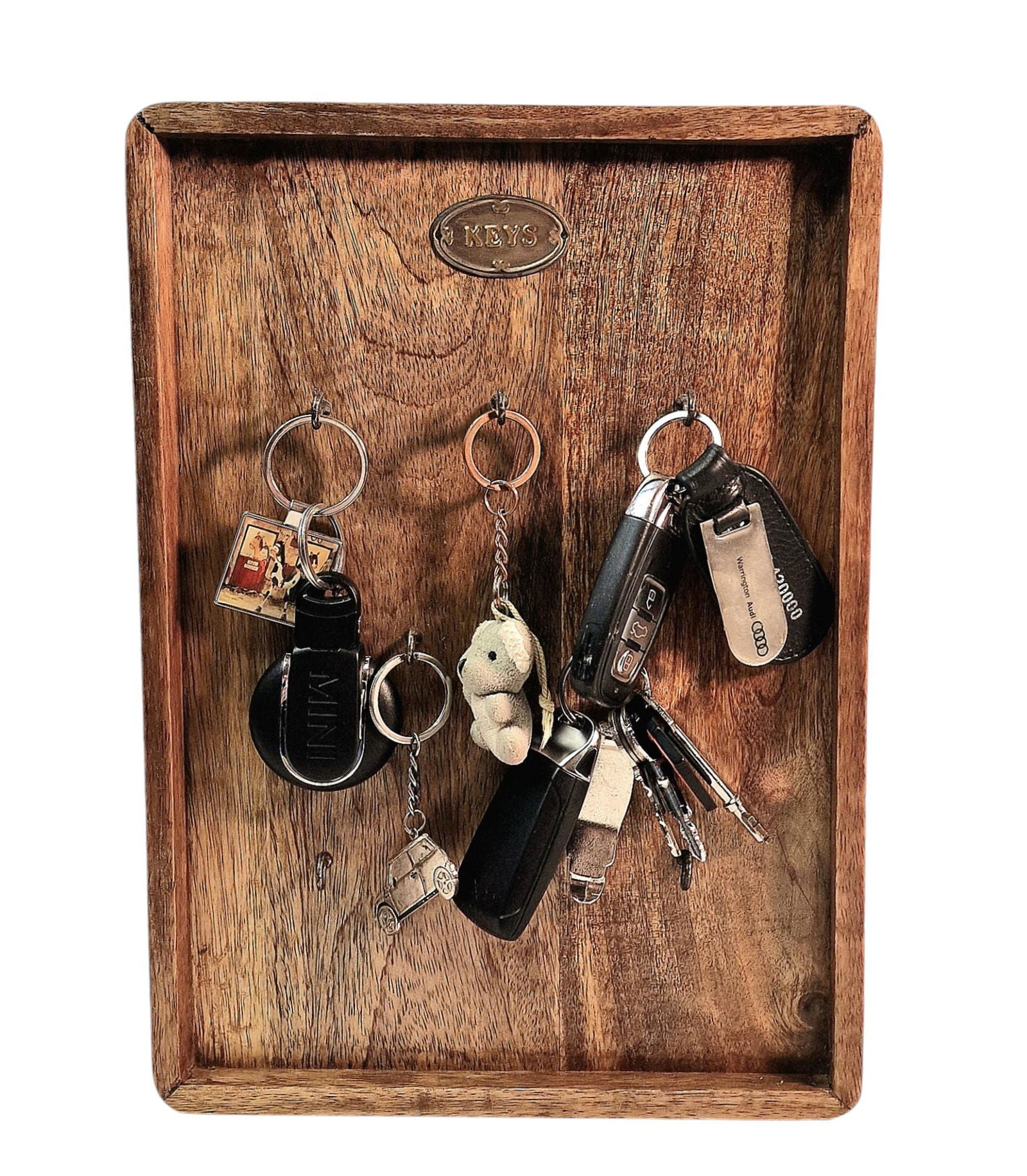 touch of vintage charm. Perfect for those who appreciate timeless, rustic style with a modern twist. A gorgeous wall mountable key hanger suitable for 8 sets of keys. Overall measurements: D2.5 x H35.5 x W25cm