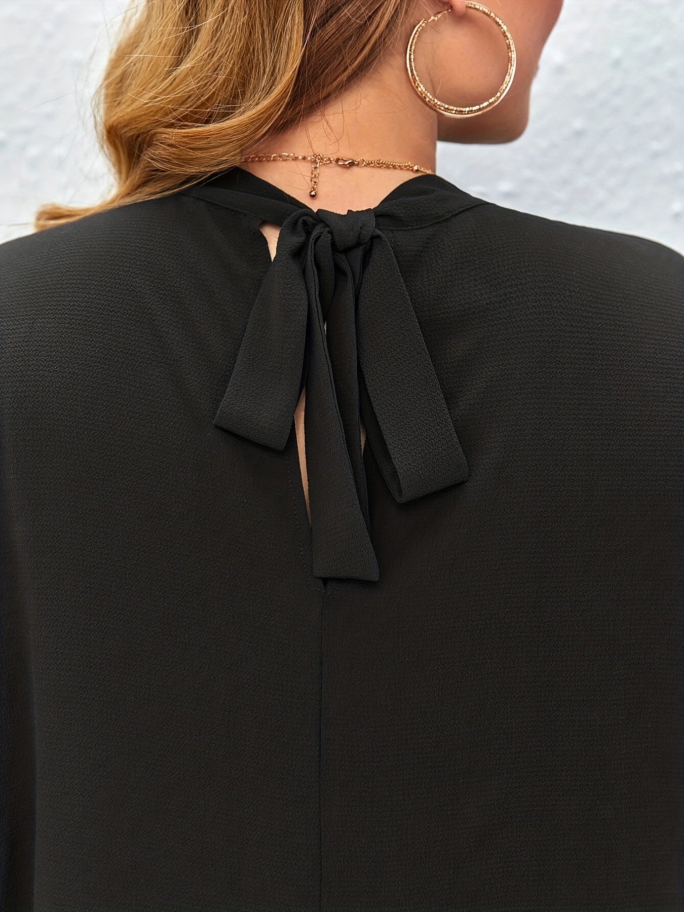 This plus size women's batwing t-shirt offers a comfortable fit with a stylish edge. Featuring a casual tie-back design and a subtle cut-out detail, it combines breathability and flair. Ideal for everyday wear, this top enhances your silhouette while allowing freedom of movement, making it a versatile addition to any wardrobe.