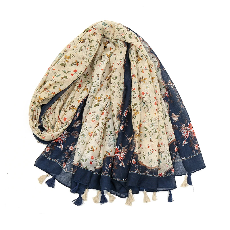 Indulge in the vibrant beauty of our Printed Floral Cotton Tassel Scarf! Made from soft, luxurious cotton, this scarf features an eye-catching floral print and delicate tassel accents. Perfect for adding a pop of color and style to any outfit. Elevate your wardrobe with this must-have accessory!