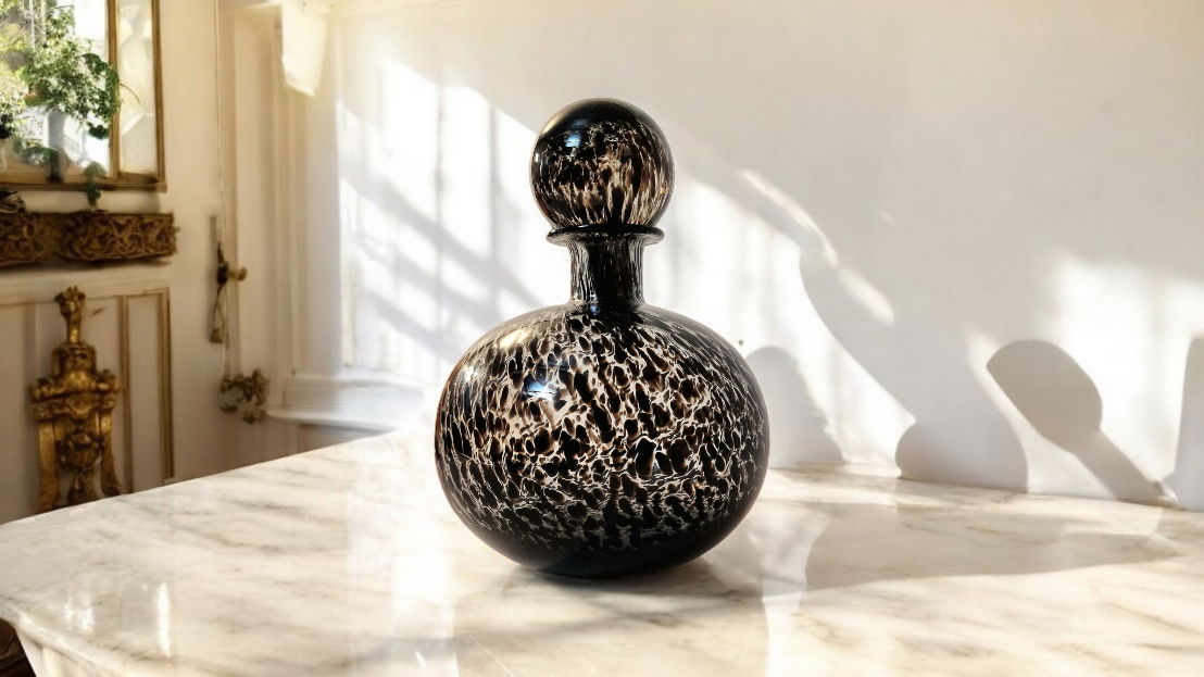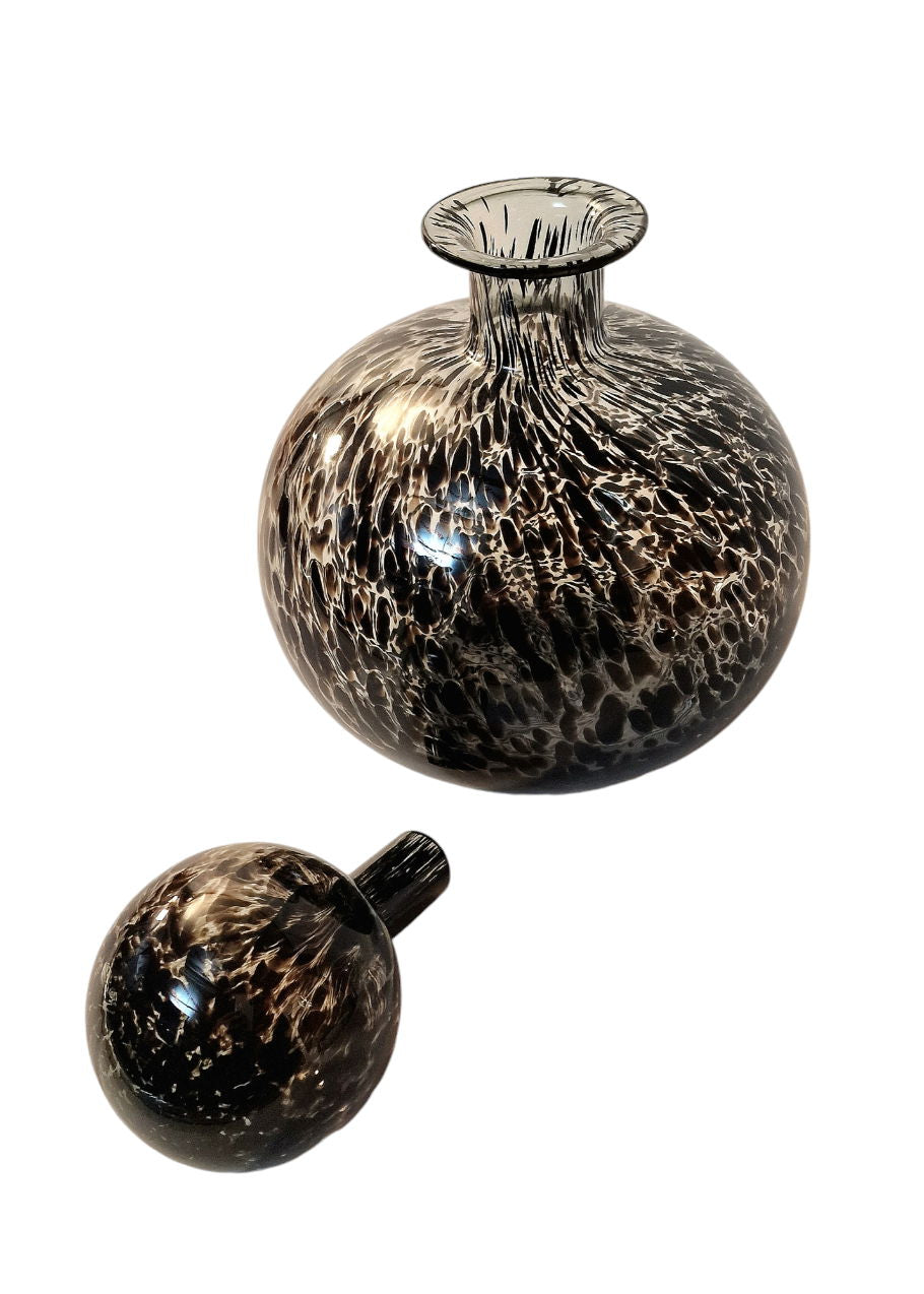 Round Glass Bottle with Lid in Black & White 27.5cm