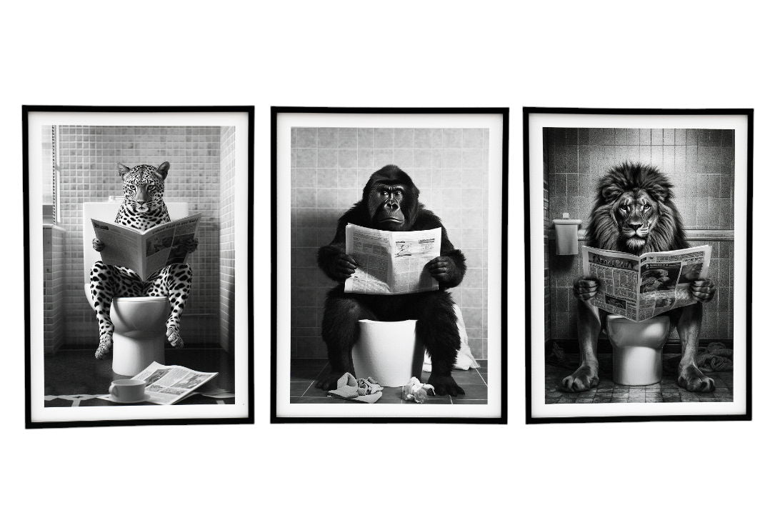 Set of 3 Animal's on the Toilet Framed Canvas 45x60cm