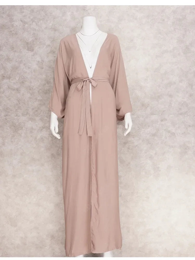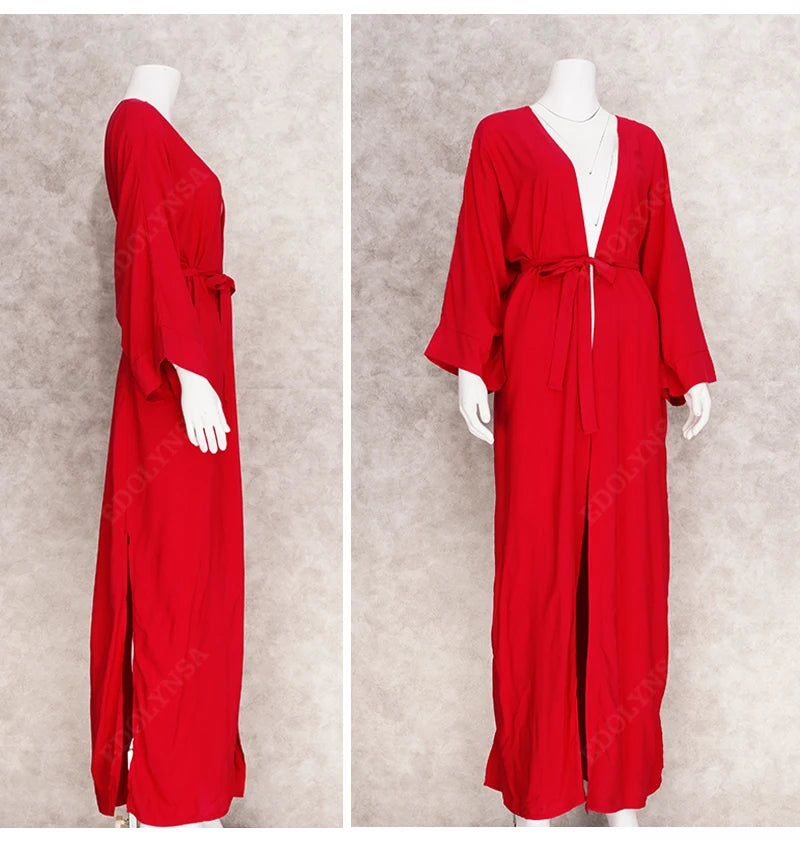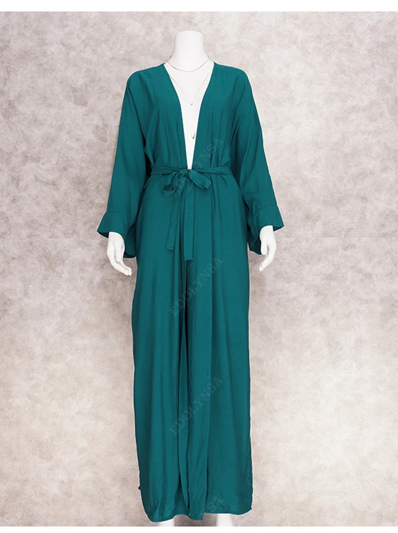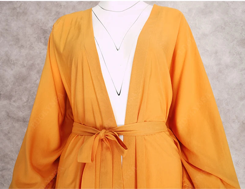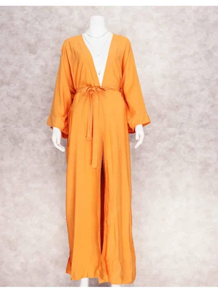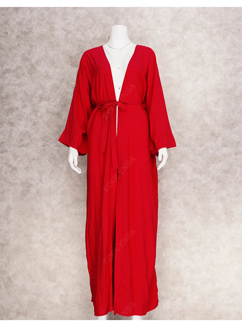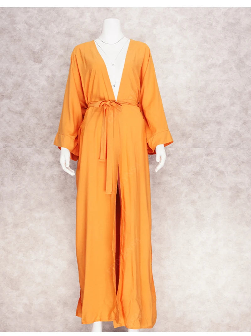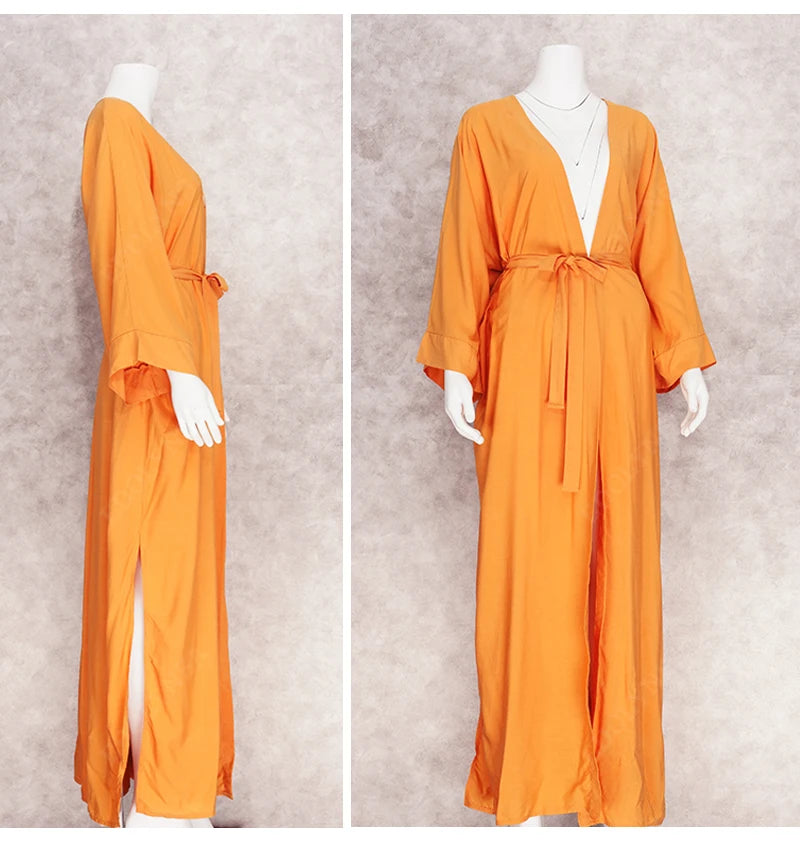 Sexy Front Open Self Belted Long Kimono Dress Summer Clothes For Women Beach Wear Bathing Suit Cover Up house dress Q1357