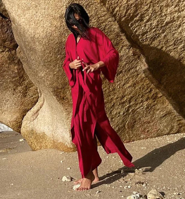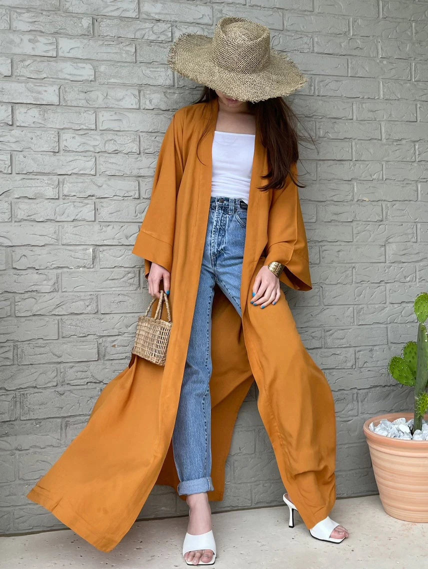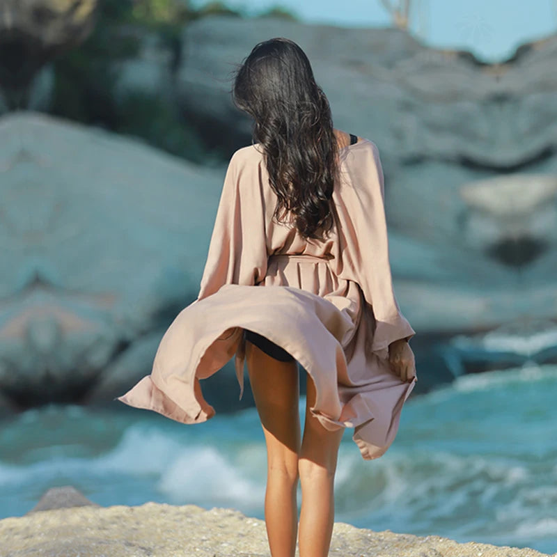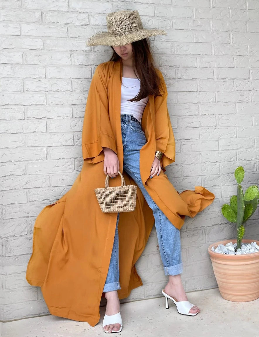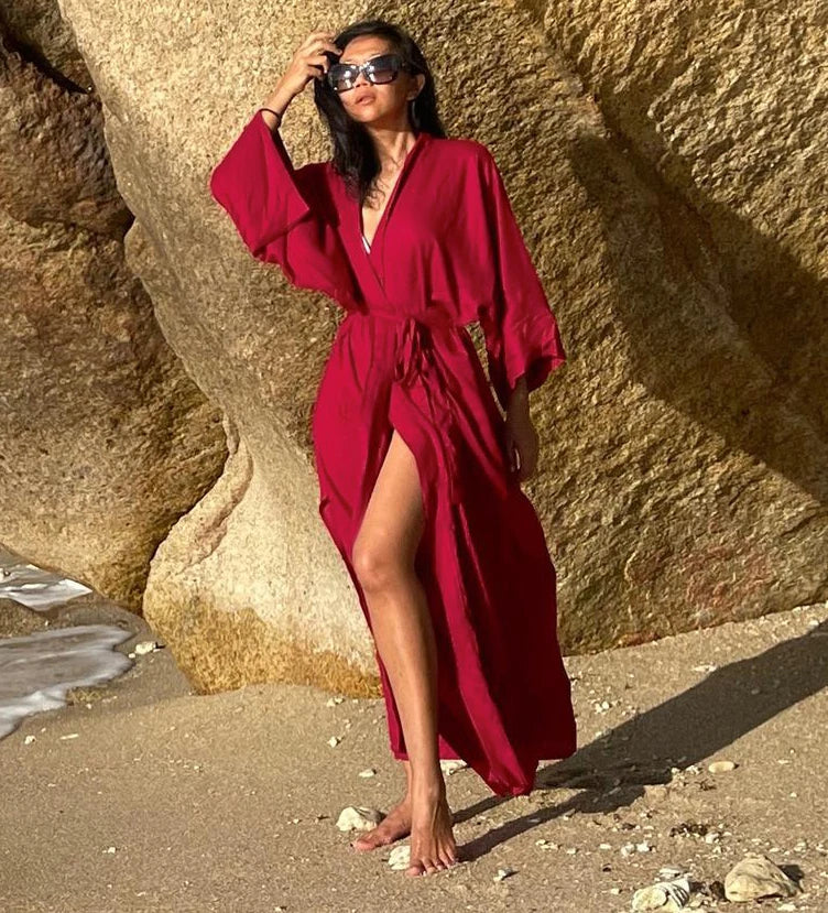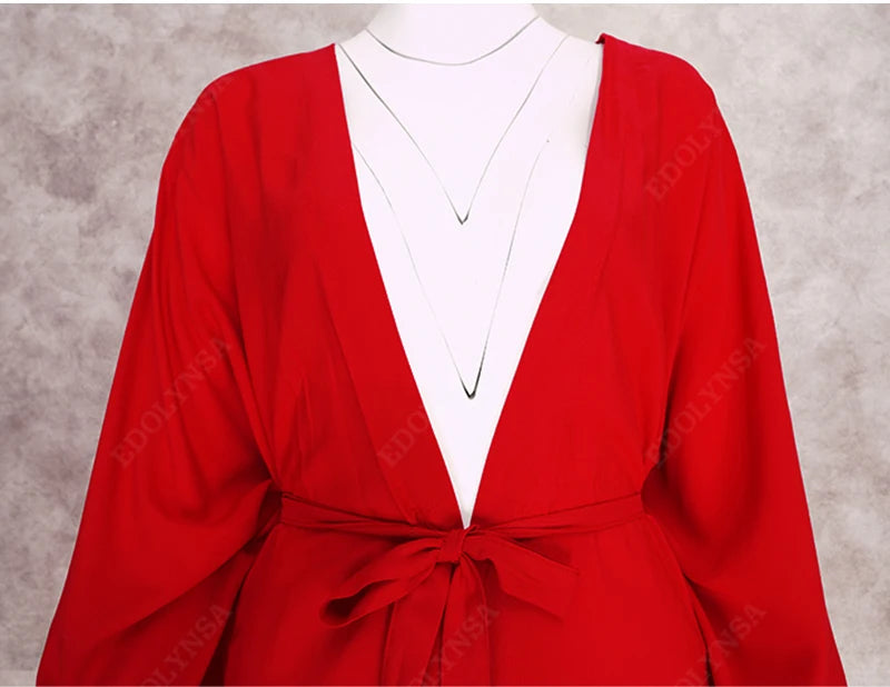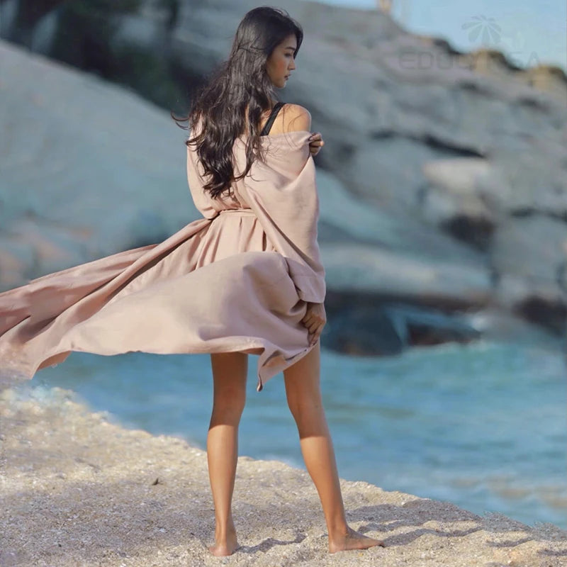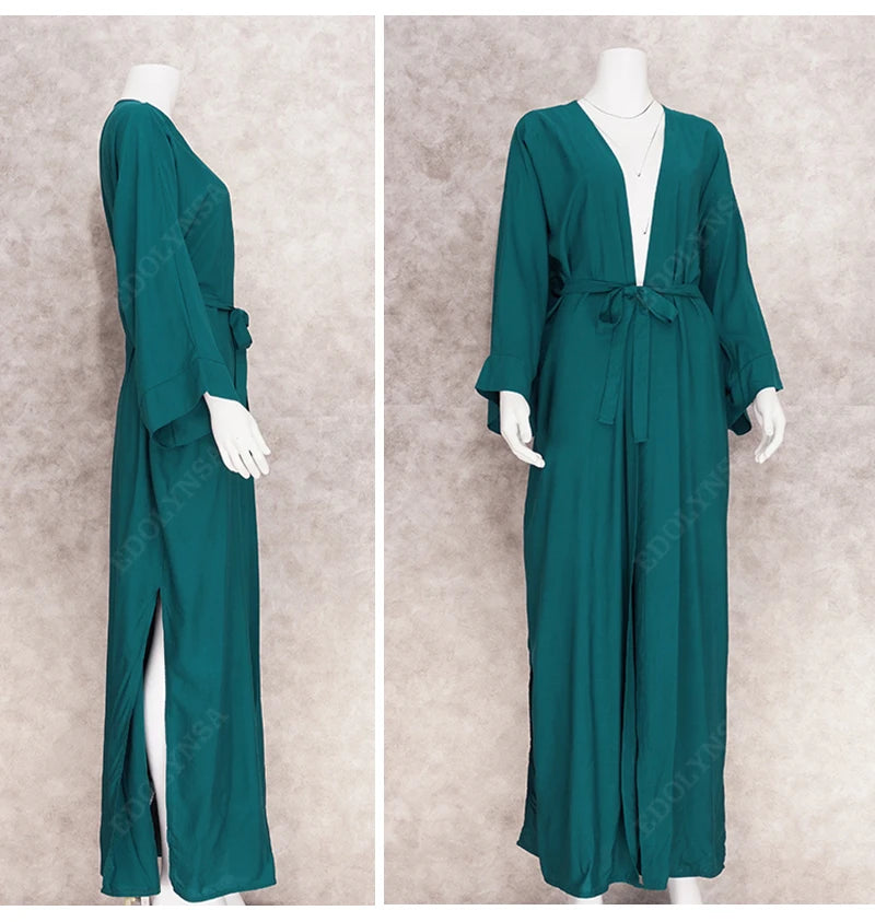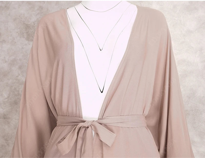 Sexy Front Open Self Belted Long Kimono Dress Summer Clothes For Women Beach Wear Bathing Suit Cover Up house dress Q1357