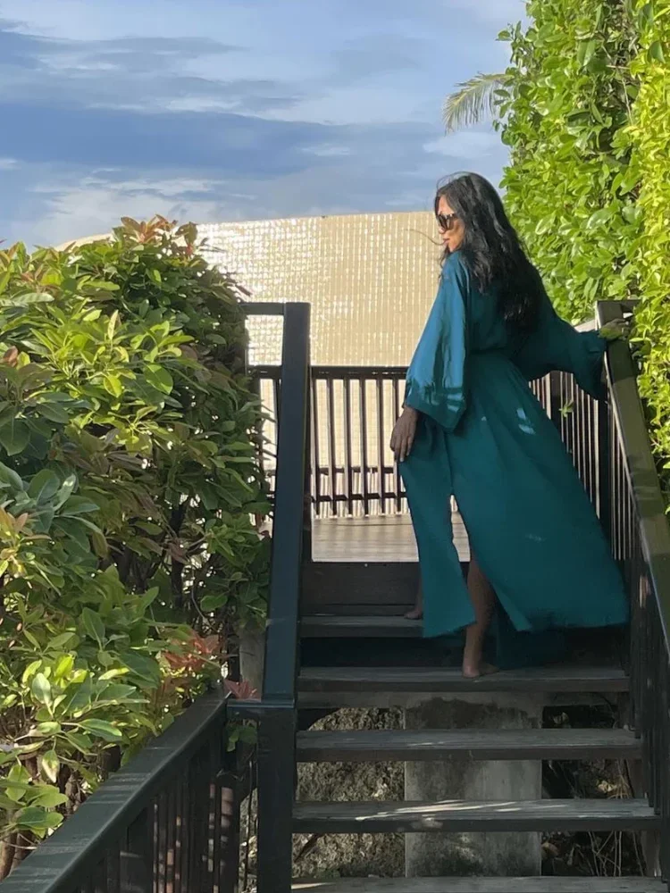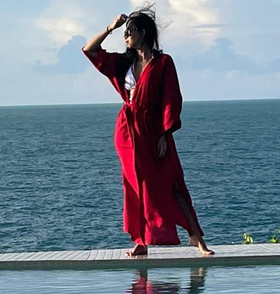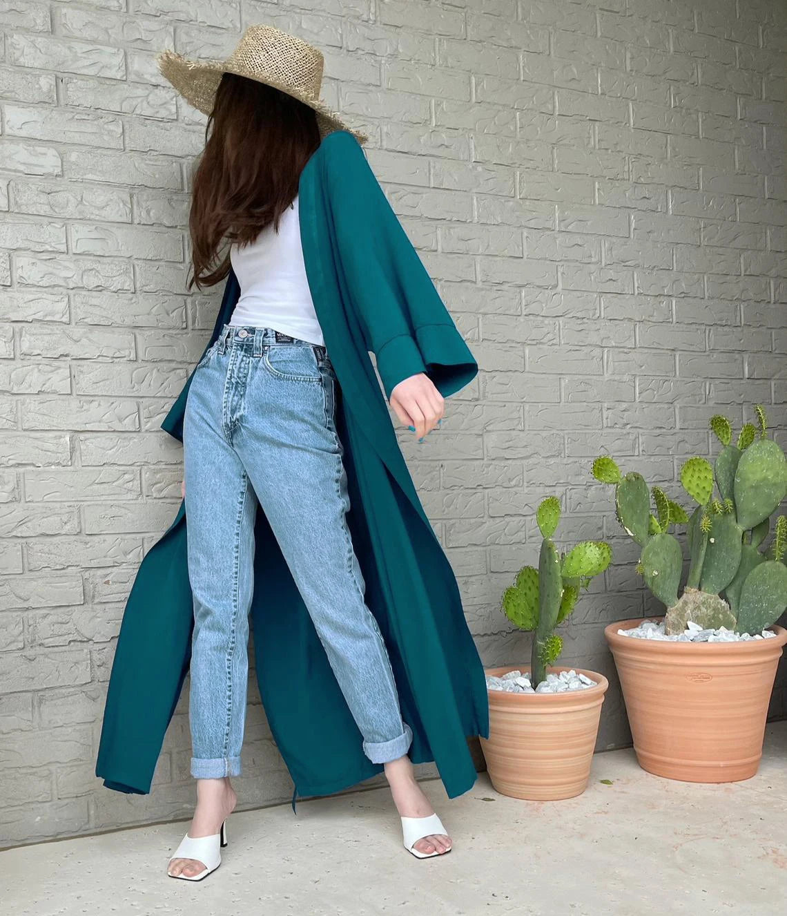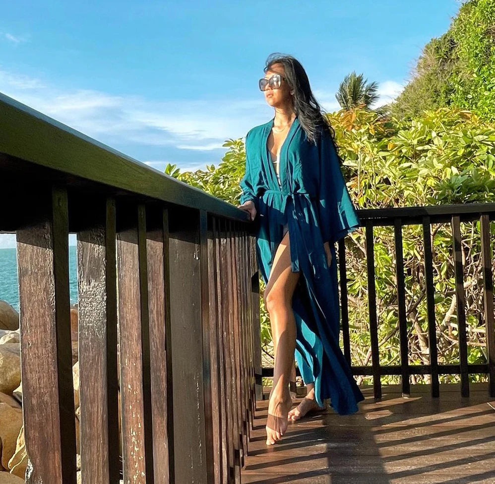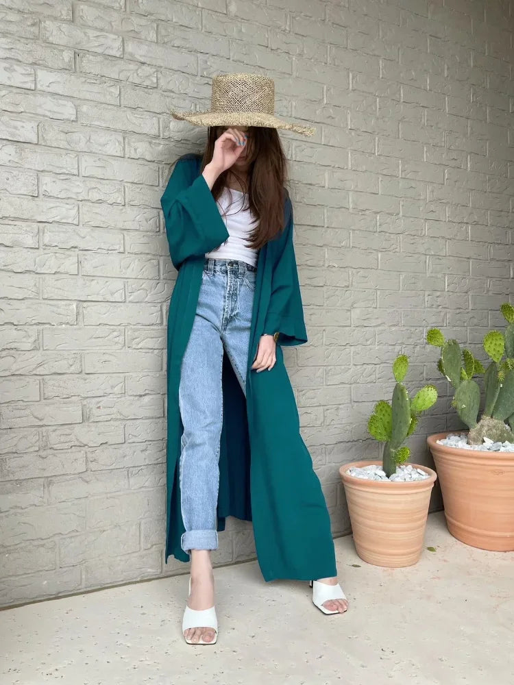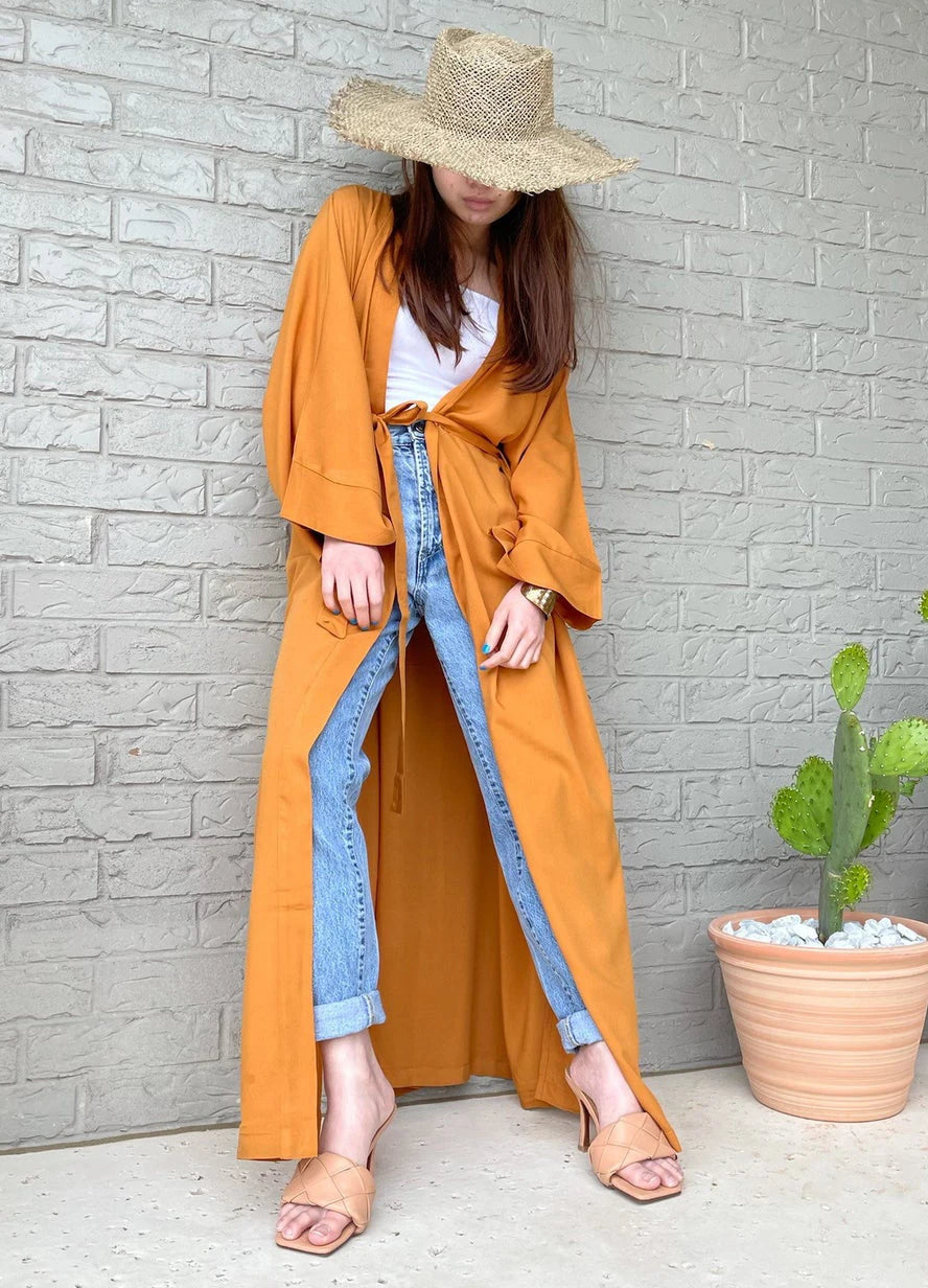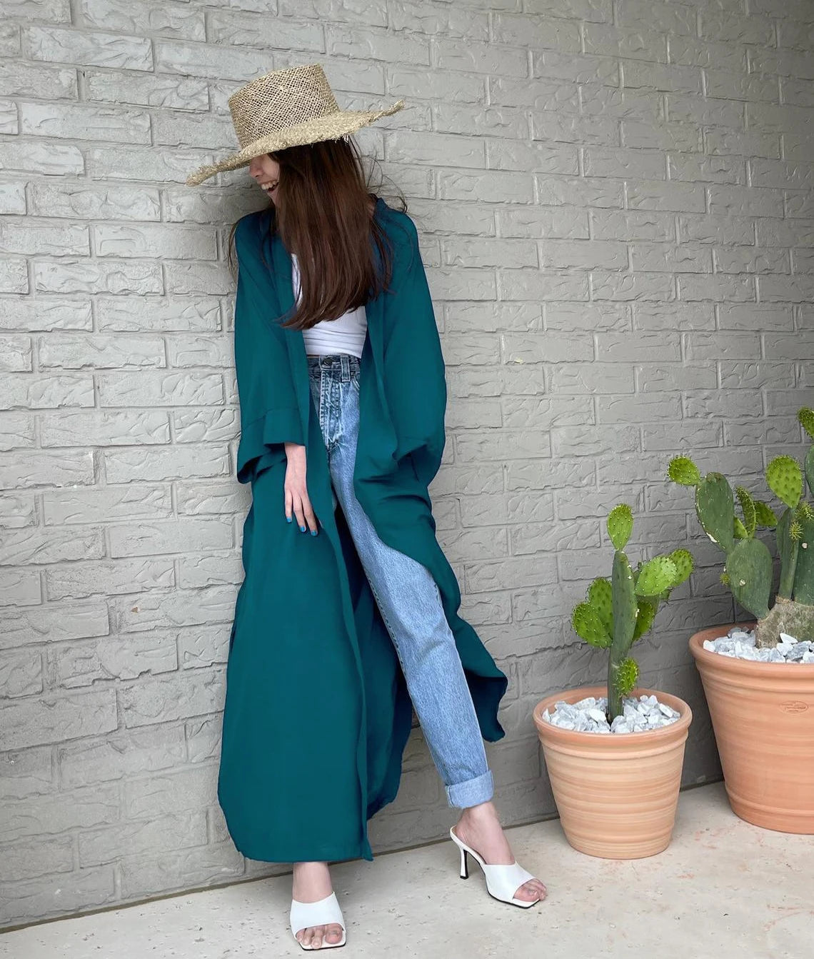 Sexy Front Open Self Belted Long Kimono Dress Summer Clothes For Women Beach Wear Bathing Suit Cover Up house dress Q1357