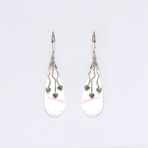 Shell & Silver Earrings - Three Hearts - MOP, Shelf & Silver Earrings -