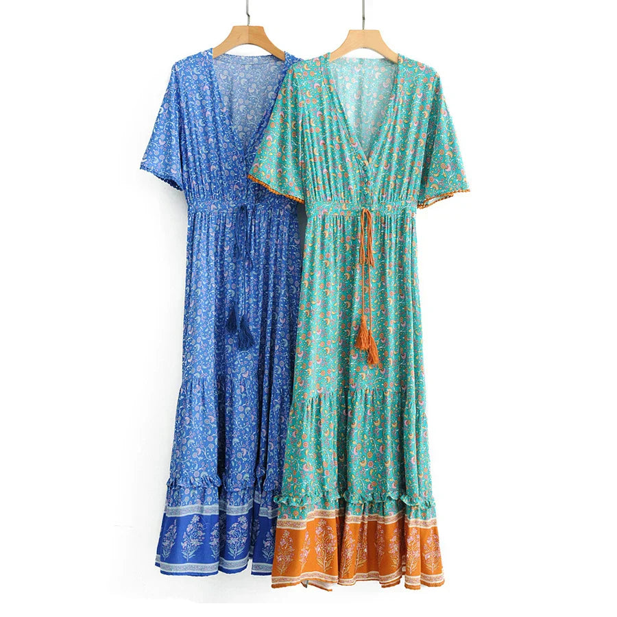 Embrace your inner bohemian with our Vintage Floral print gypsy dress. Featuring a stunning floral print, this dress exudes effortless charm and endless style possibilities. Channel your free-spirited nature and make a statement in this must-have piece.
