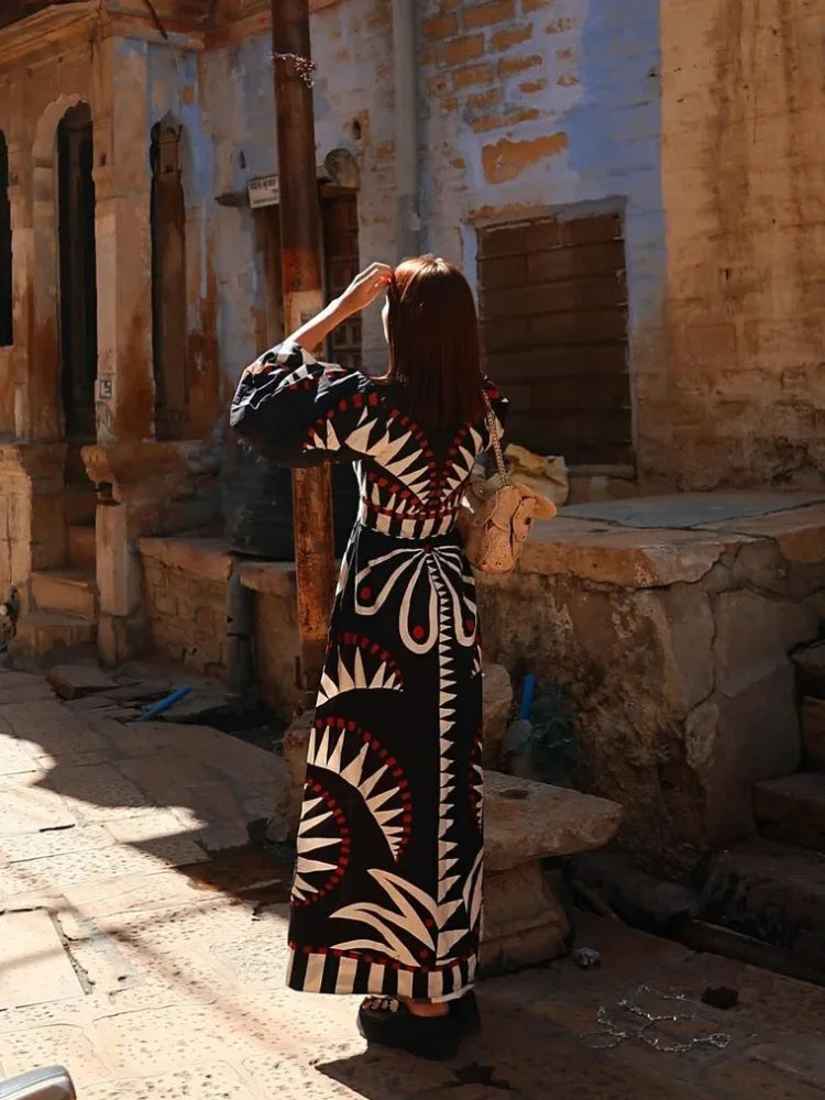 Upgrade your wardrobe with our stunning Midi Dress from our Ibiza range. Featuring elegant puff long sleeves, this dress exudes sophistication and style. Perfect for any occasion, this dress will make you feel confident and chic. Elevate your fashion game with this must-have piece.