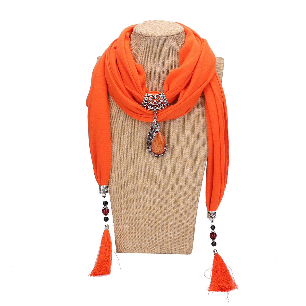Women Scarf Pendant Necklace Nature Stone Pendant Necklace Fringe Tassel Scarves with Beads Ethnic Jewelry Pashminas Para Mujer