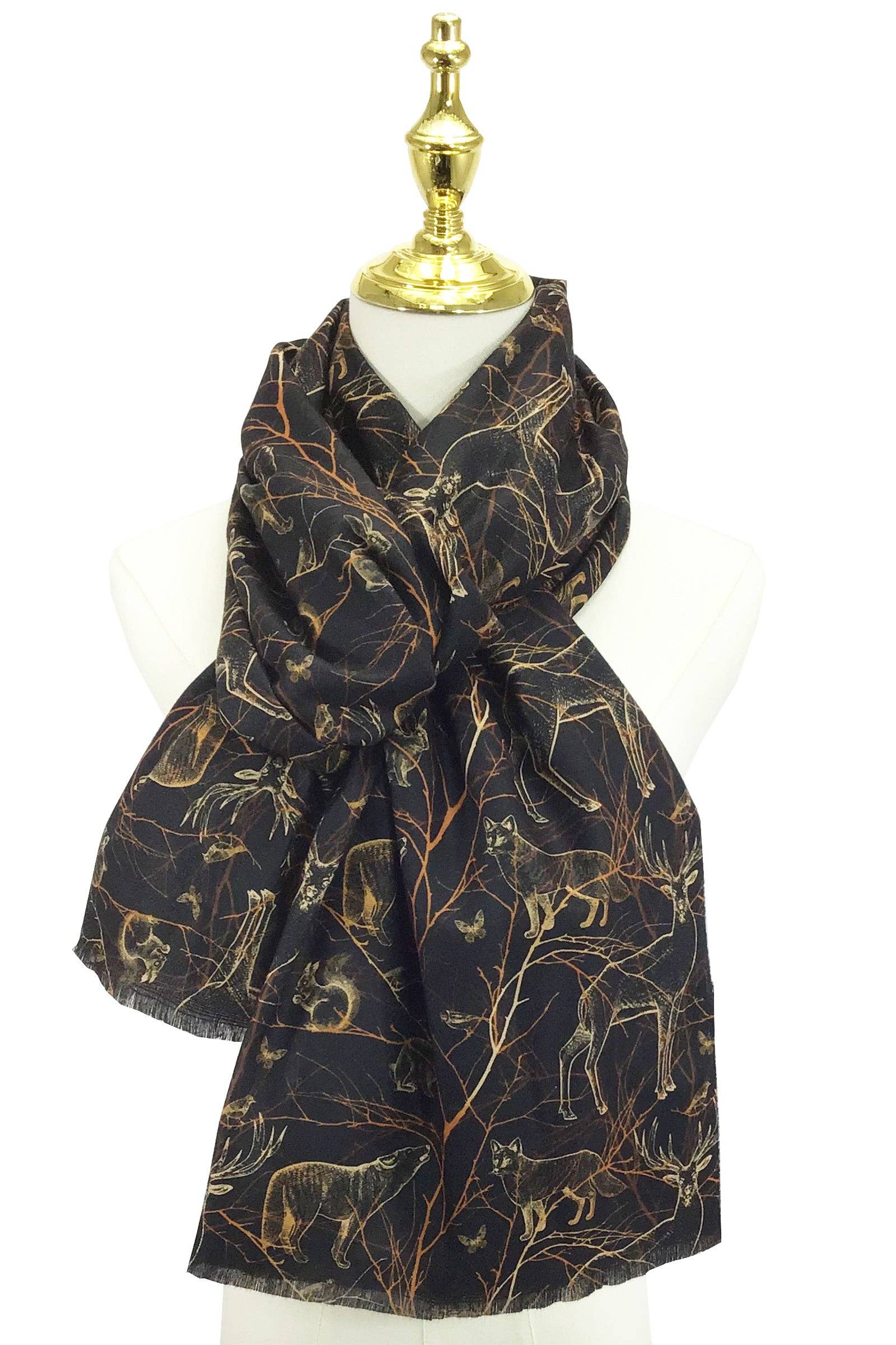 The Woodland Animals Print Wool Scarf combines warmth and sophistication with its high-quality wool construction. Designed for comfort and insulation, this scarf features charming woodland animal motifs that add a subtle yet distinctive touch to any outfit. Its soft texture and durable fabric ensure lasting wear, making it an ideal accessory for colder seasons while showcasing a refined connection to nature-inspired design.