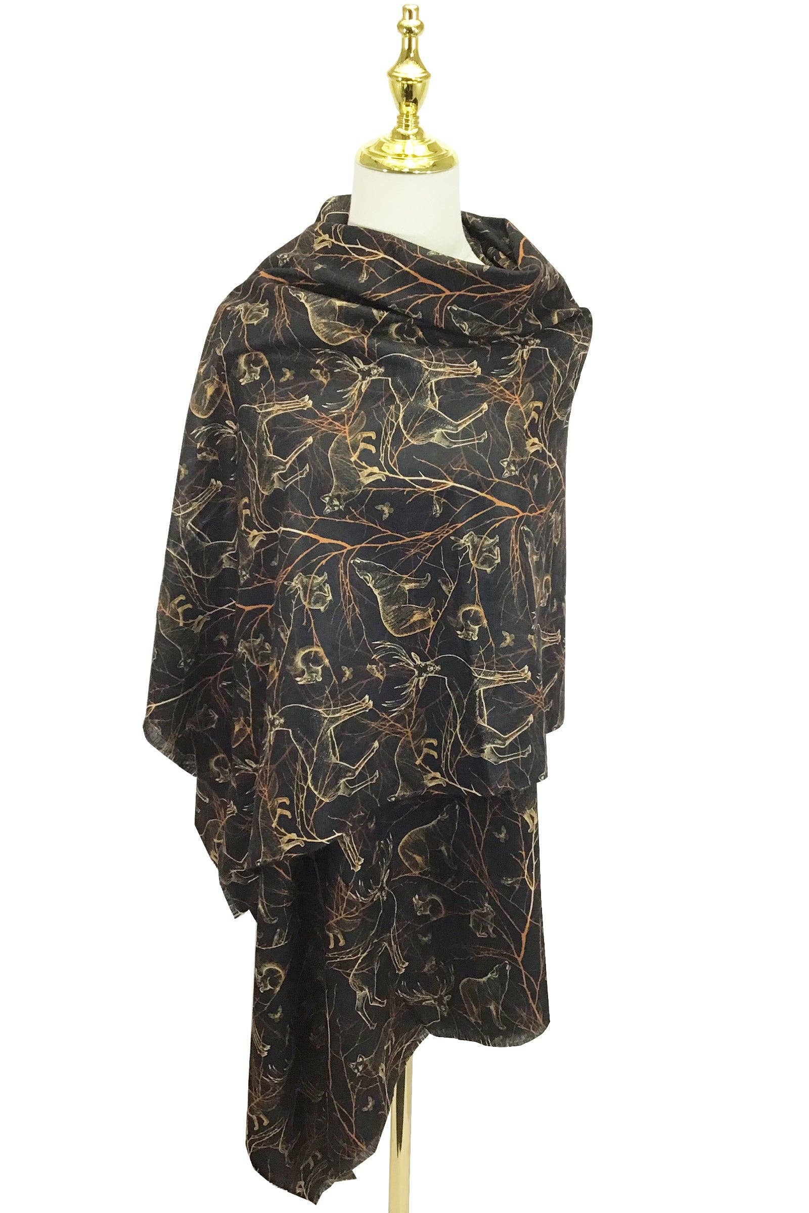 Woodland Animals Print Wool Scarf: Black