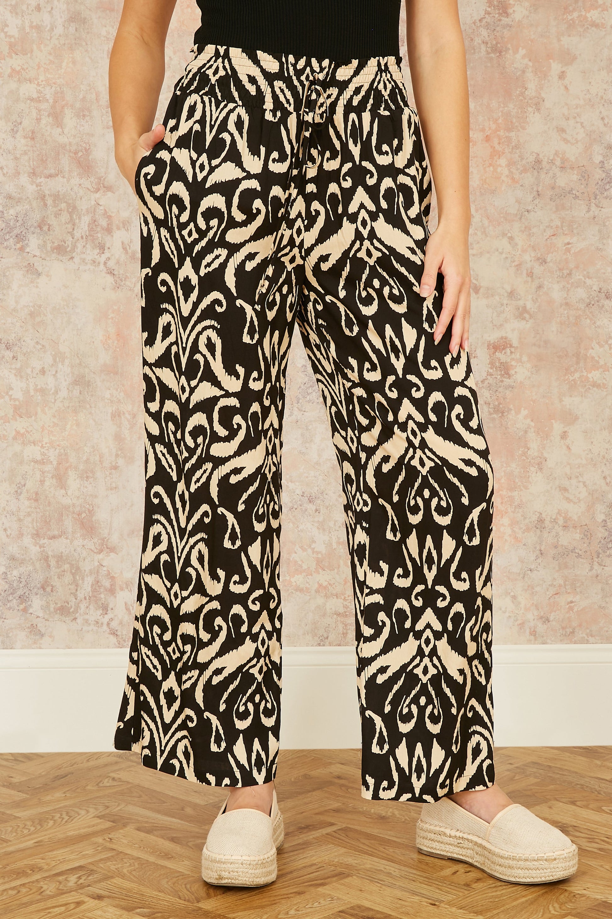 Yumi Black Ikat Print Relaxed Fit Trousers
