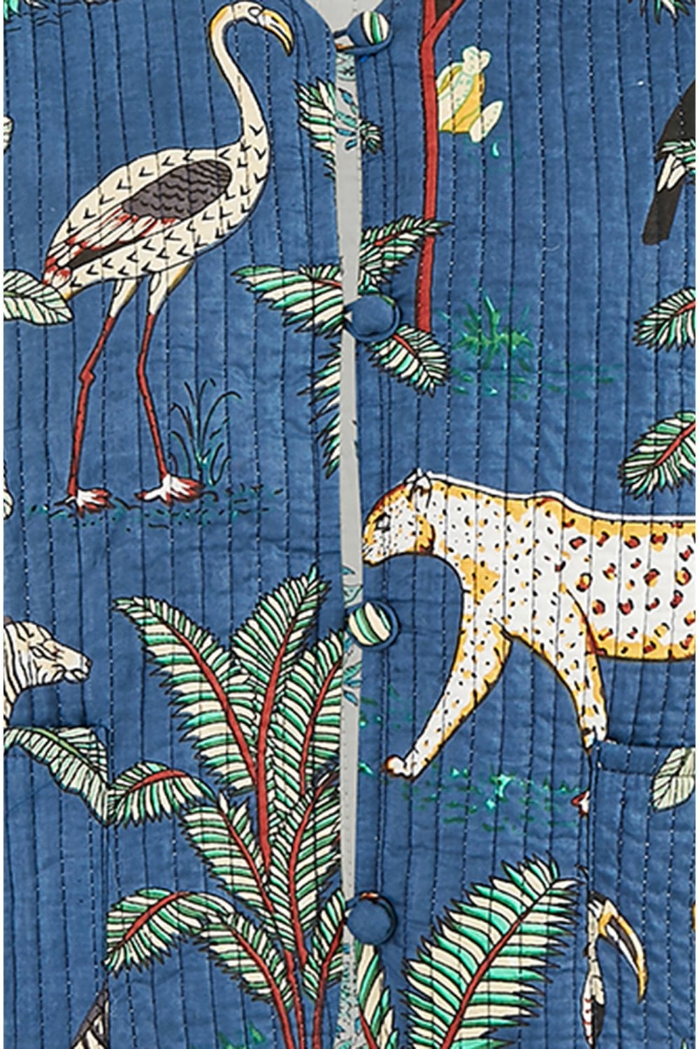 Yumi Blue Animal Print Reversible Cotton Cropped Quilted Jacket