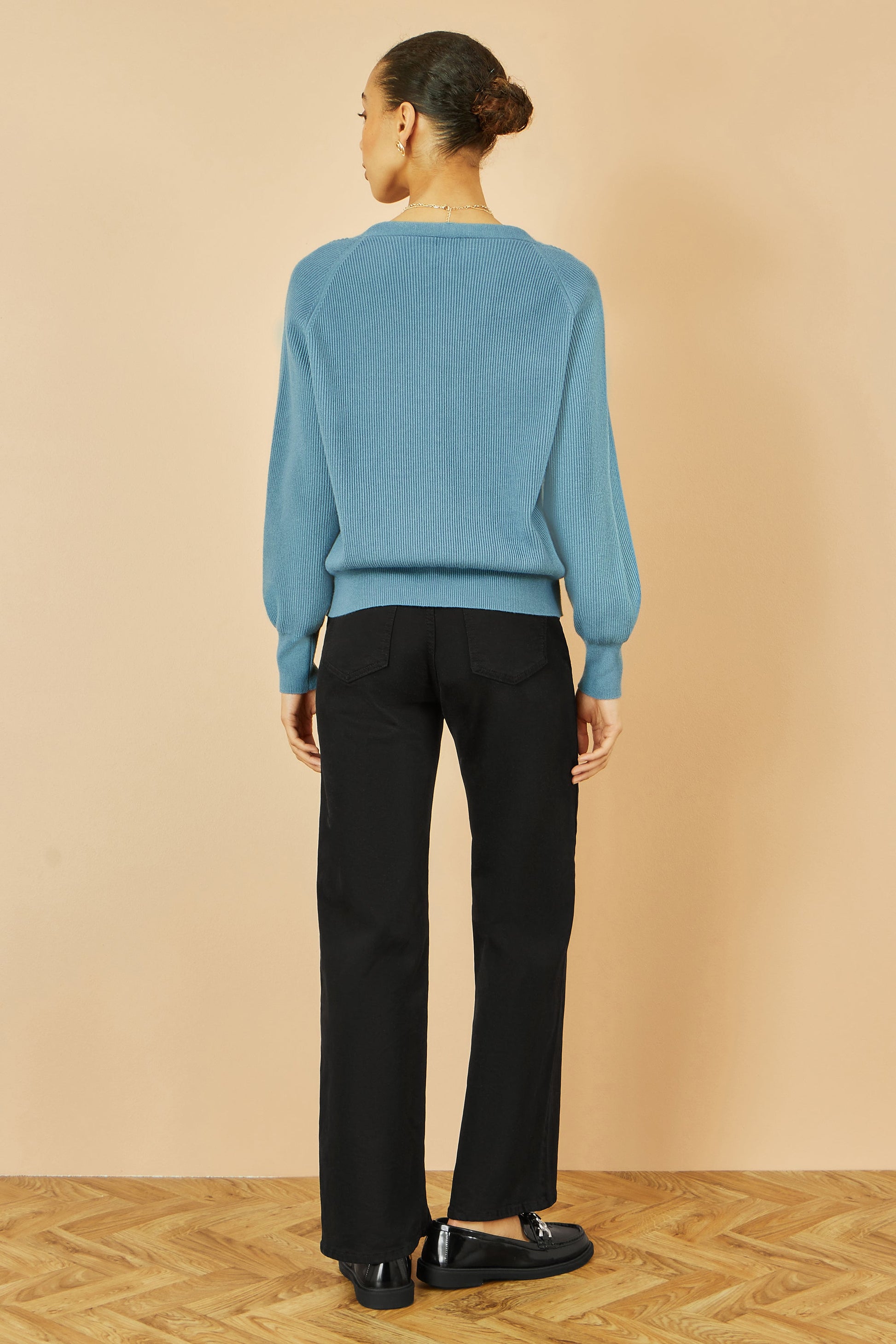 Yumi Blue Relaxed Fit Cardigan With Stitch Detail
