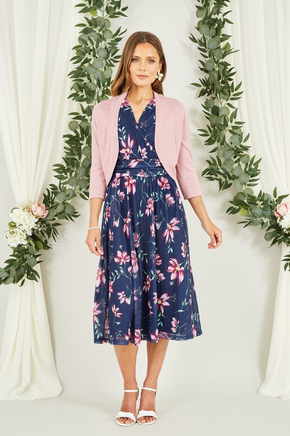 Layer up with this Blush Knitted Bolero. Made in a close-knit soft feel fabric. This little number is perfect to layer over any dress for those fancy events to keep you looking sophisticated. In a simple edge to edge curve design, this piece will sit at the waist, with a 3/4 sleeve to keep the chill off.