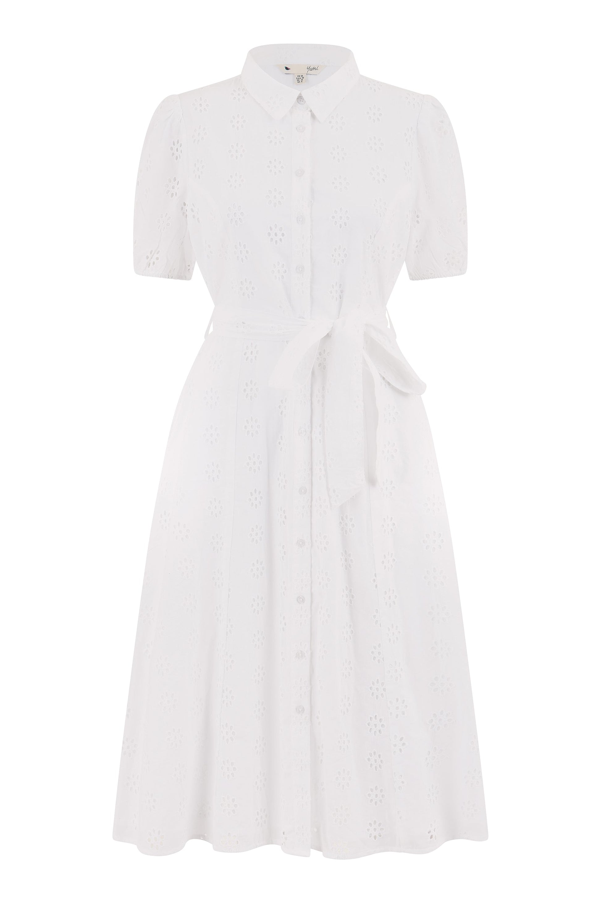 Yumi White Cotton Broderie Anglaise Midi Shirt Dress